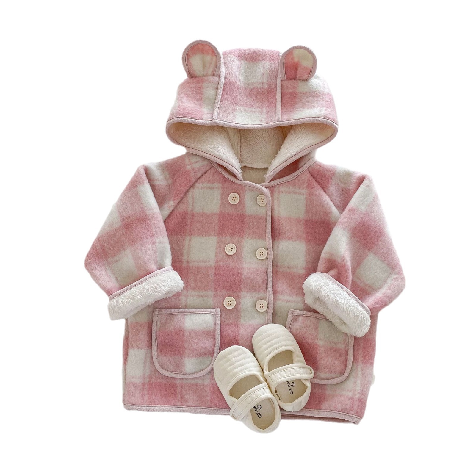 Girls Plaid Coat 0-6 Years Old Winter South Korea Children's Wear Baby Girl fleece-lined Thickened Top Children's Winter Wear AY633