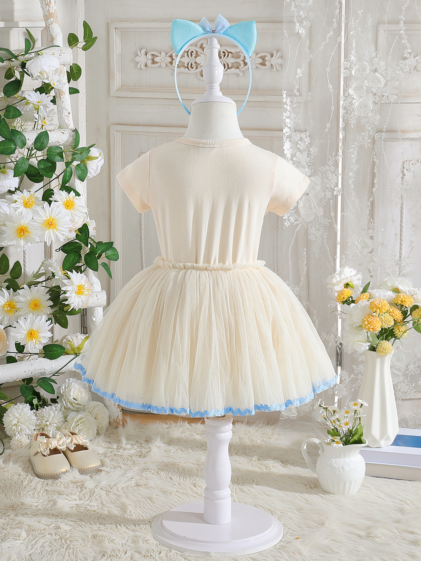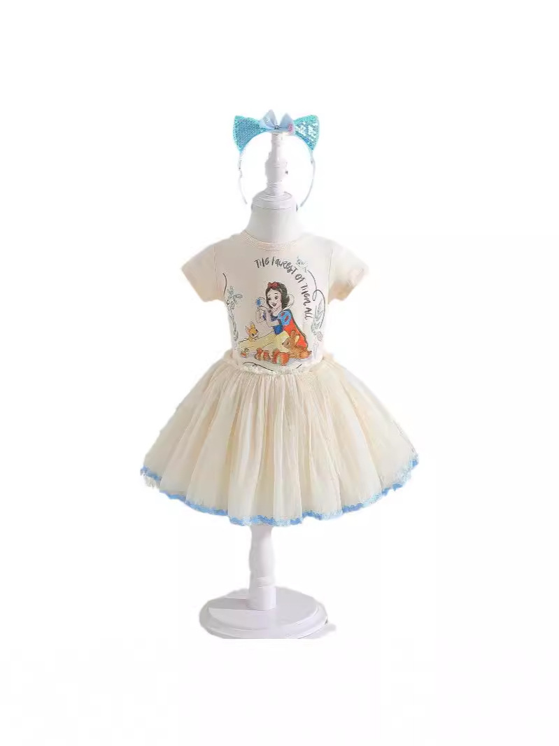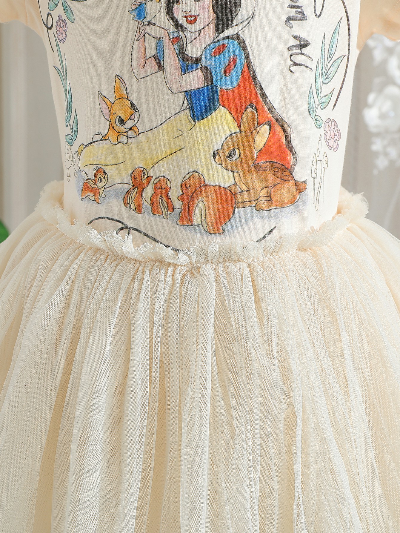 Girls Short-Sleeved Dress Summer Kidsren's Baby Fluffy Mesh Skirt Little Girl Super Fashionable White*Snow Princess Dress