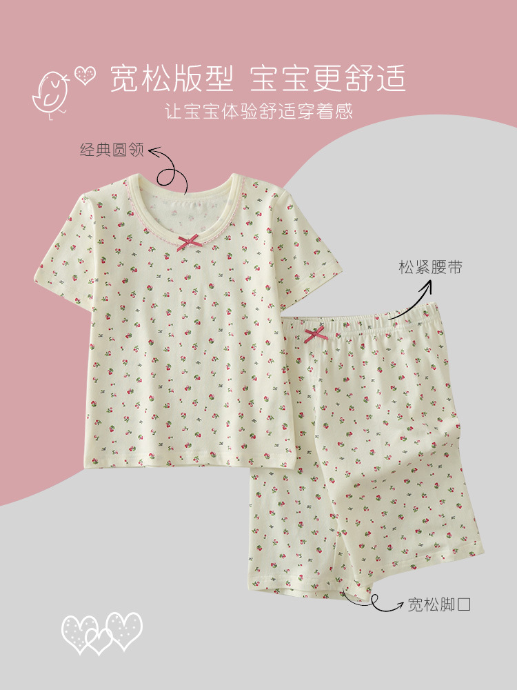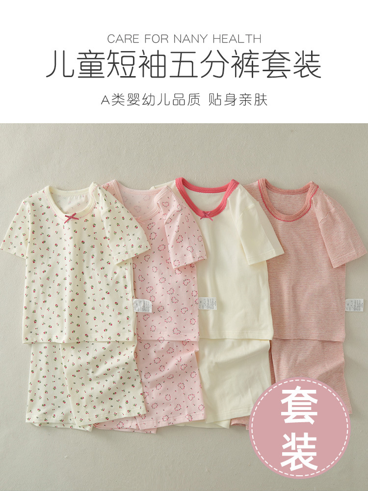 Girls short-sleeved suit 2023 new children's half-sleeved 5 pants summer cotton home clothes baby two-piece
