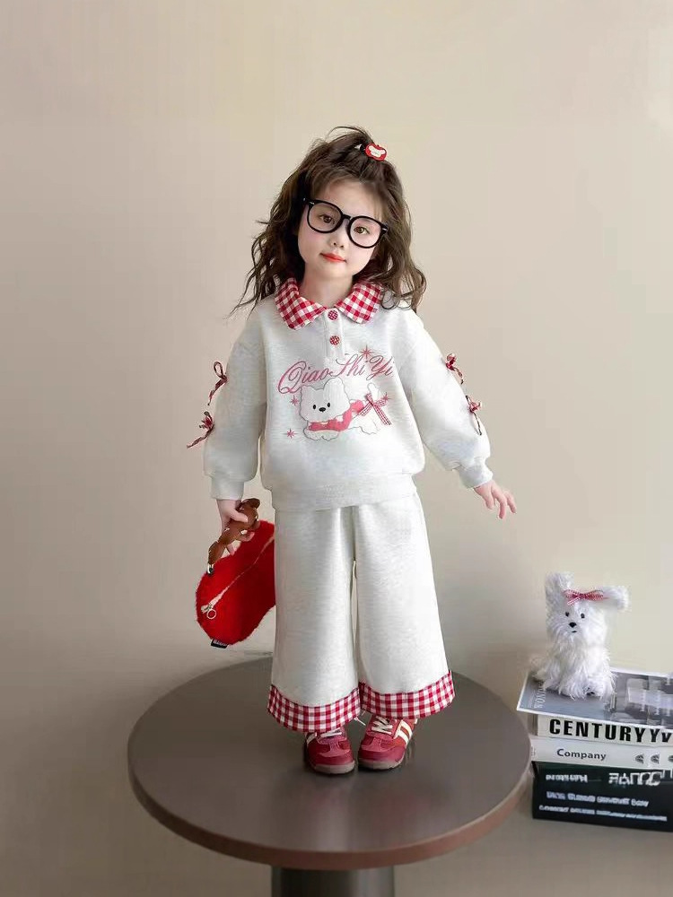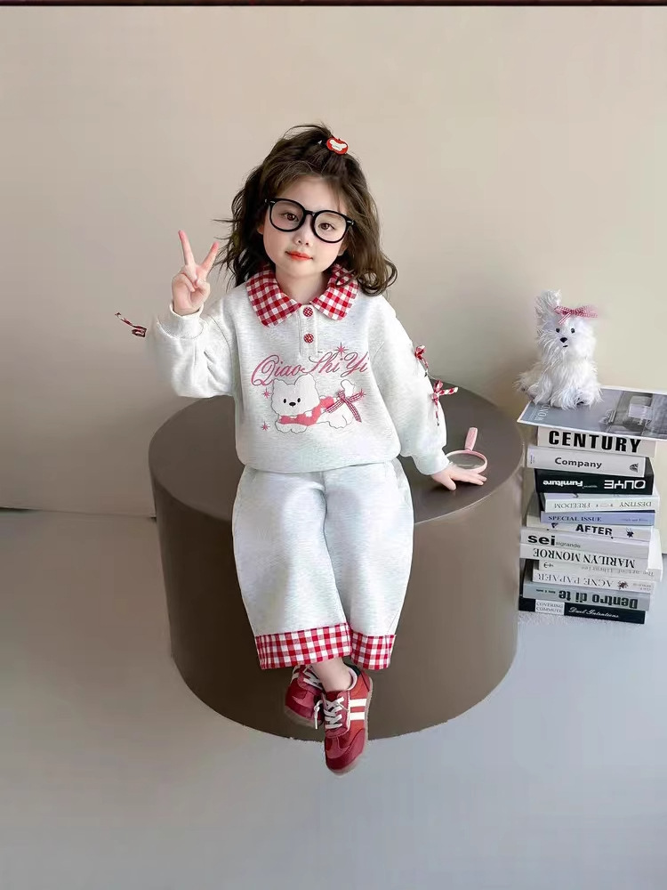 Girls Suit Winter New Style Fleece-Lined and Thickeneded Baby Girl Casual Wide-Leg Pants Sweatshirt Girls Cute Two-Piece Set