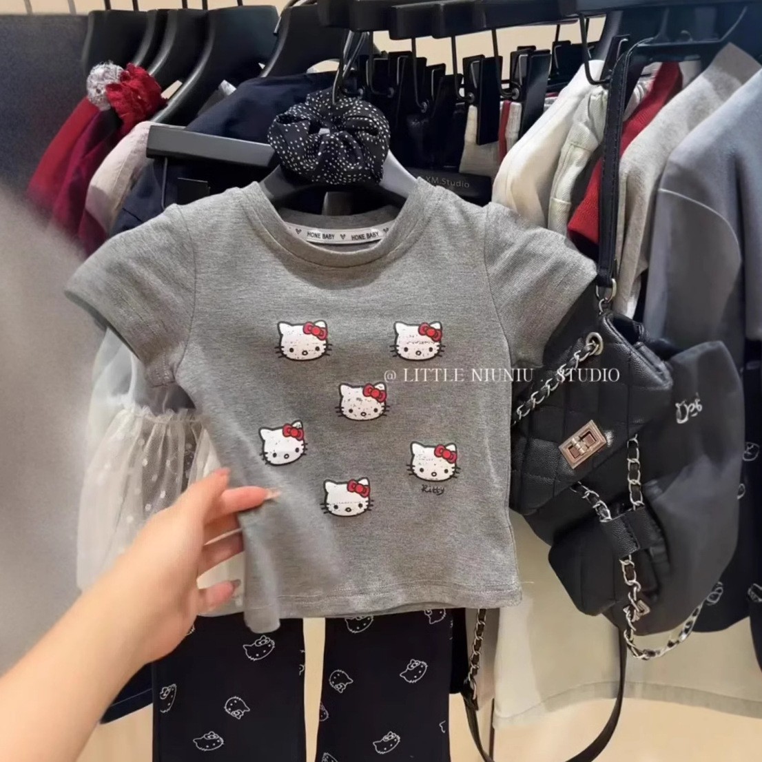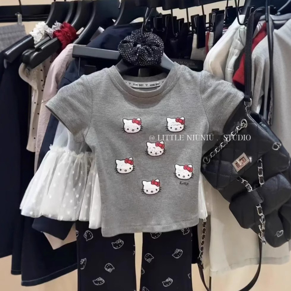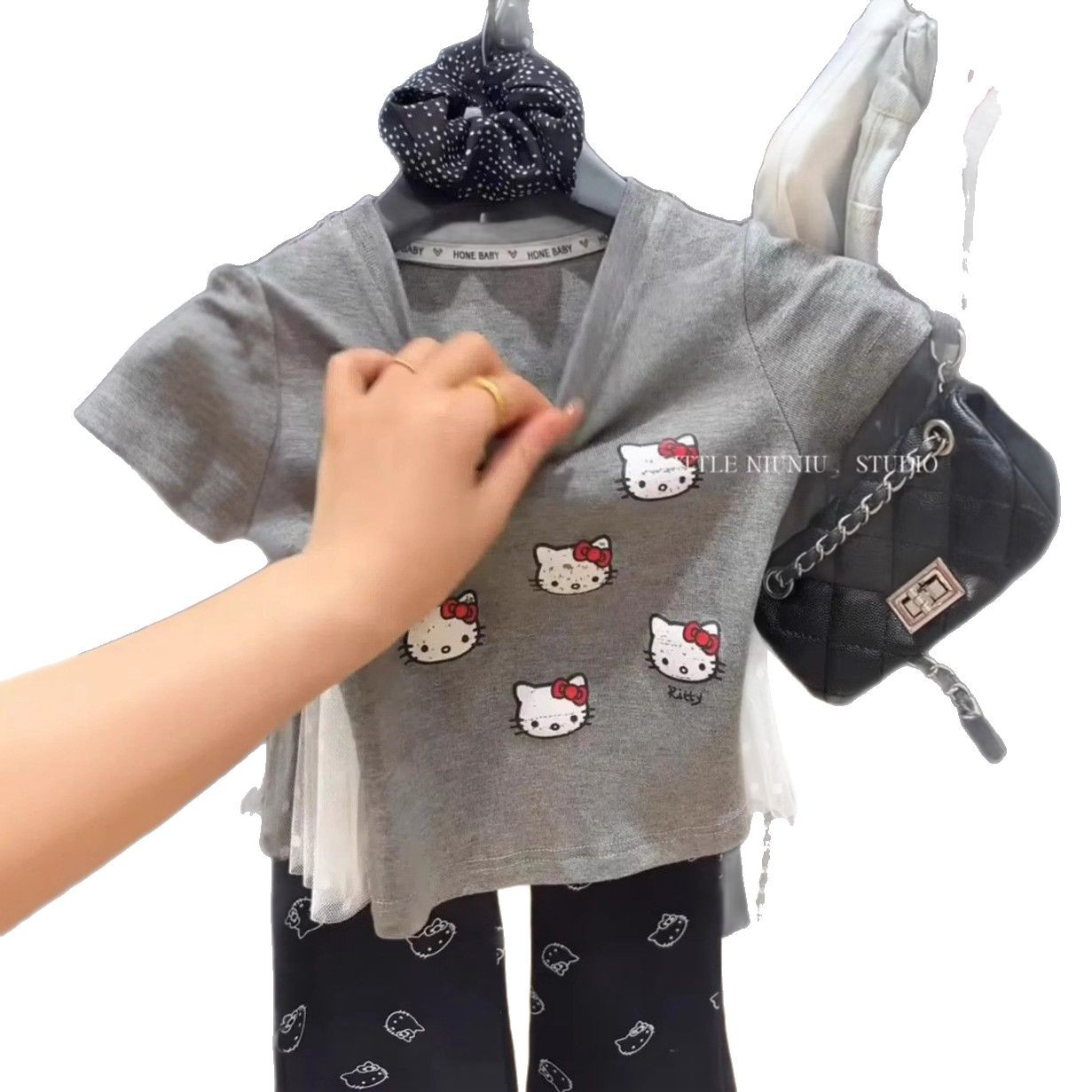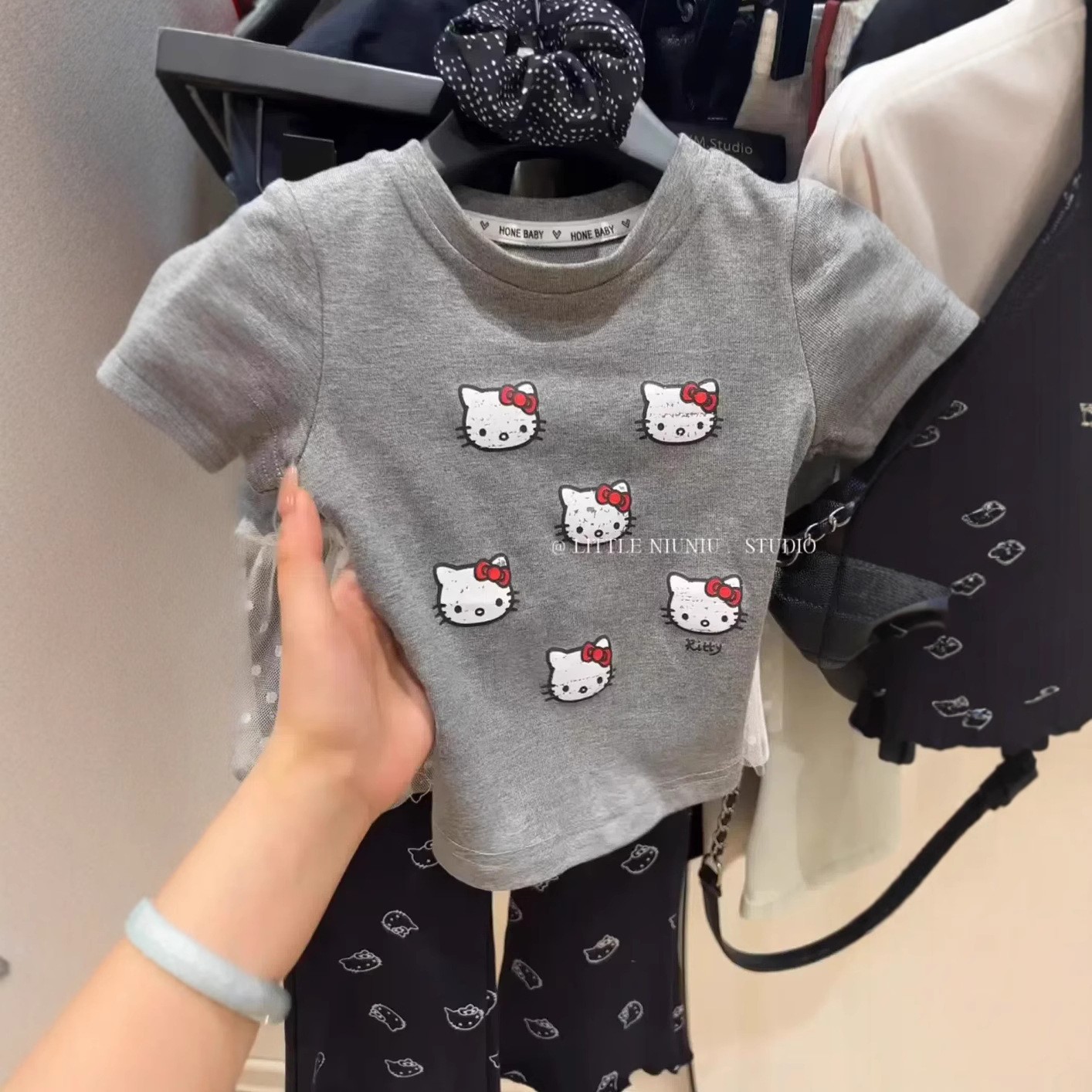 Girls' Summer Kitty Short-sleeved 2025 Baby's New Children's Wear Korean Style Western Style Sweet Cute Printed T-shirt
