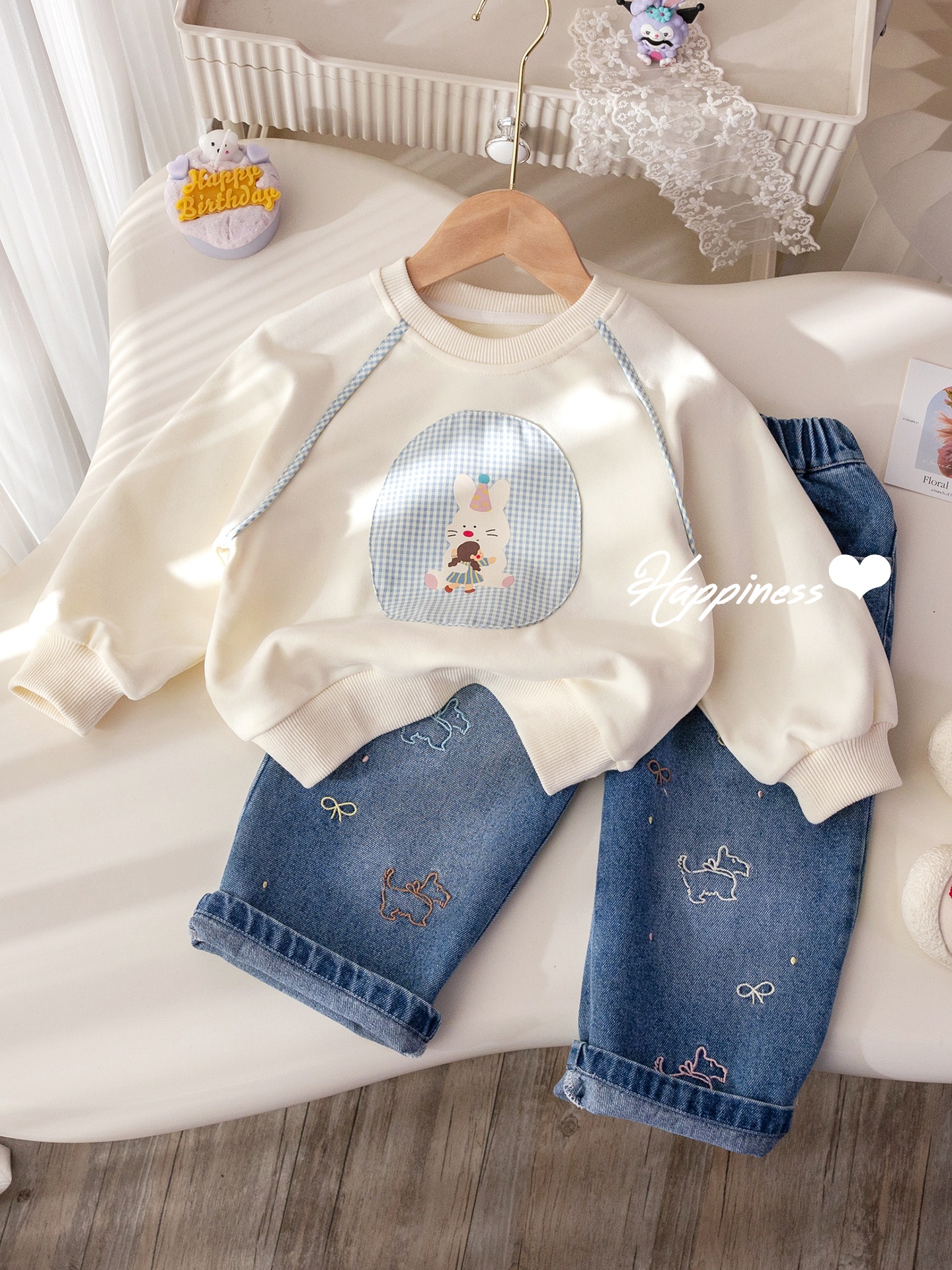 Girls' Sweater Korean Style Sweet Cute Cartoon Cloth Print Pullover for Baby Girls Spring and Autumn New Fashionable Top