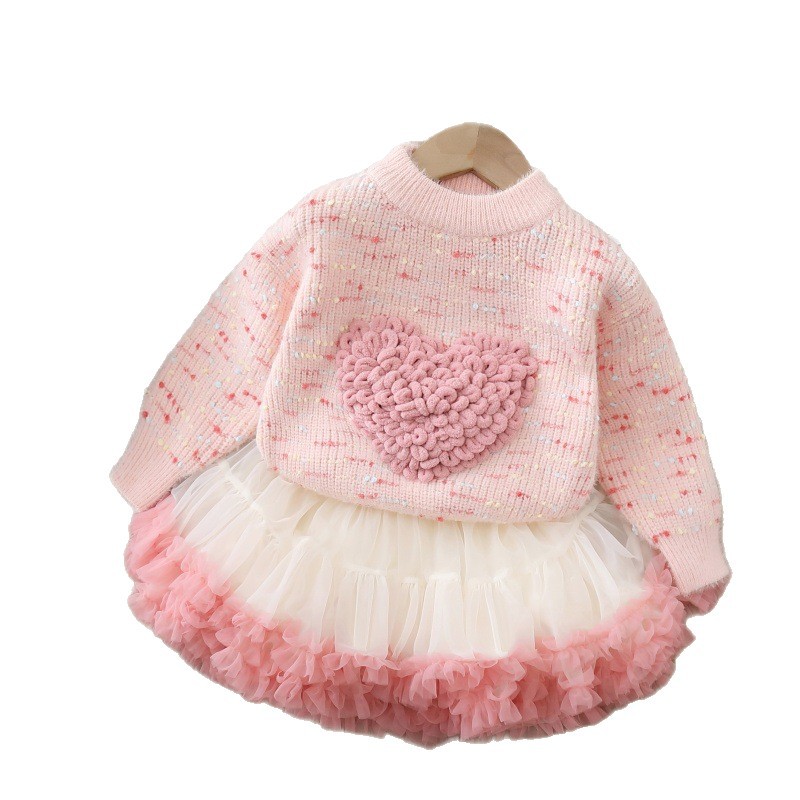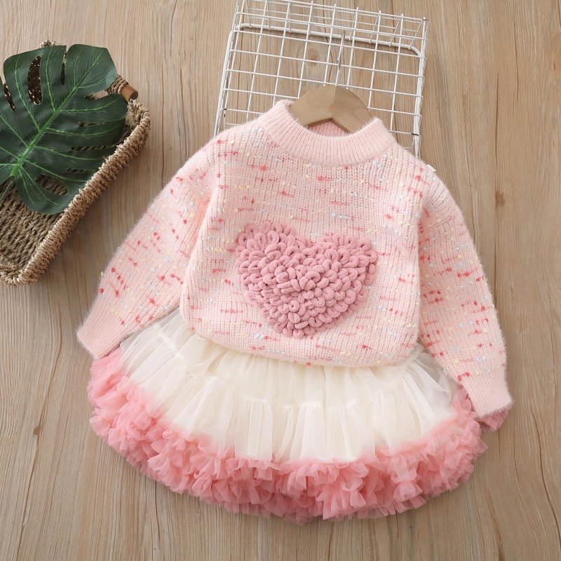 Girls Sweater Princess Tutu Skirt Two-Piece Set Autumn and Winter New Style Baby Girl Korean Style Knitted Pullover Set