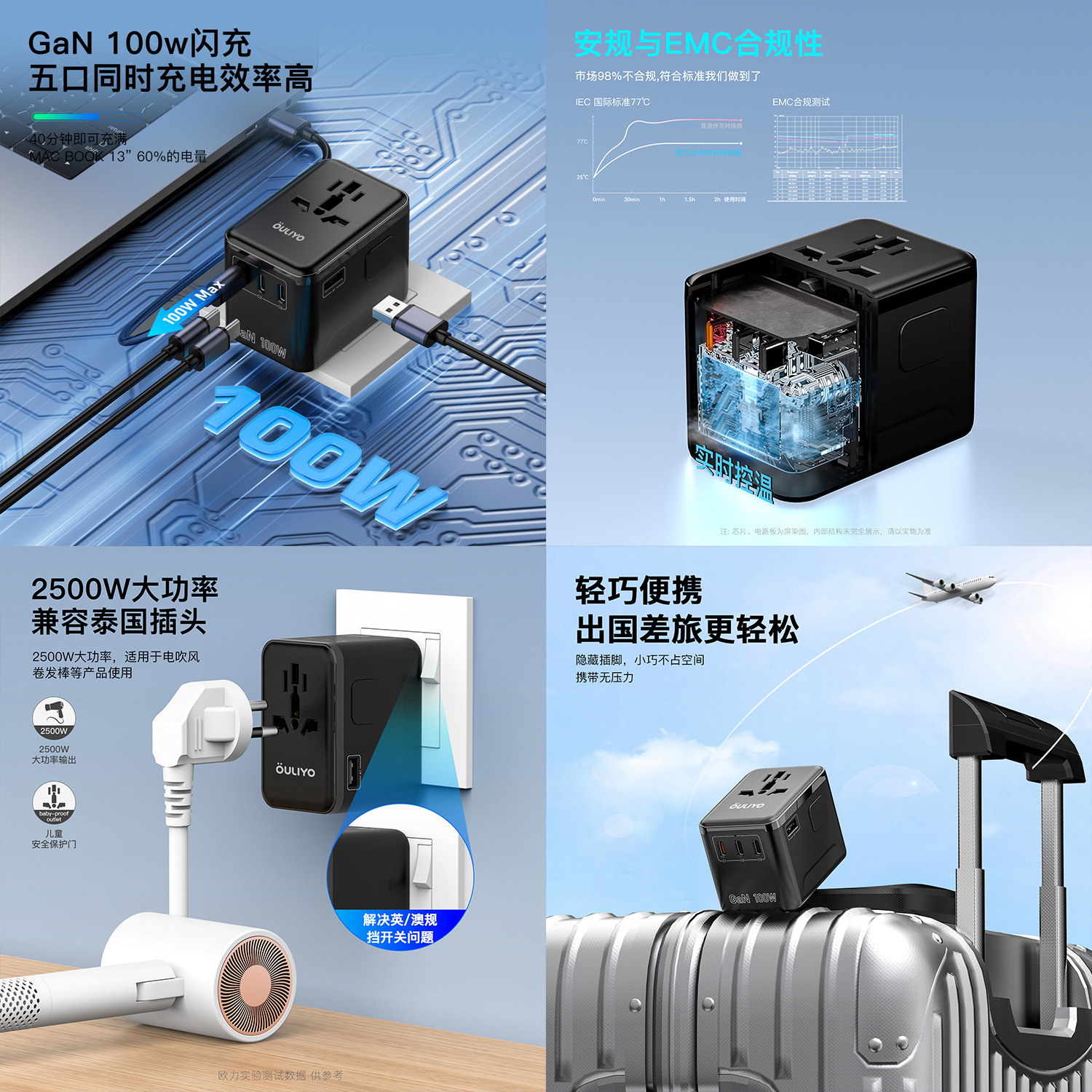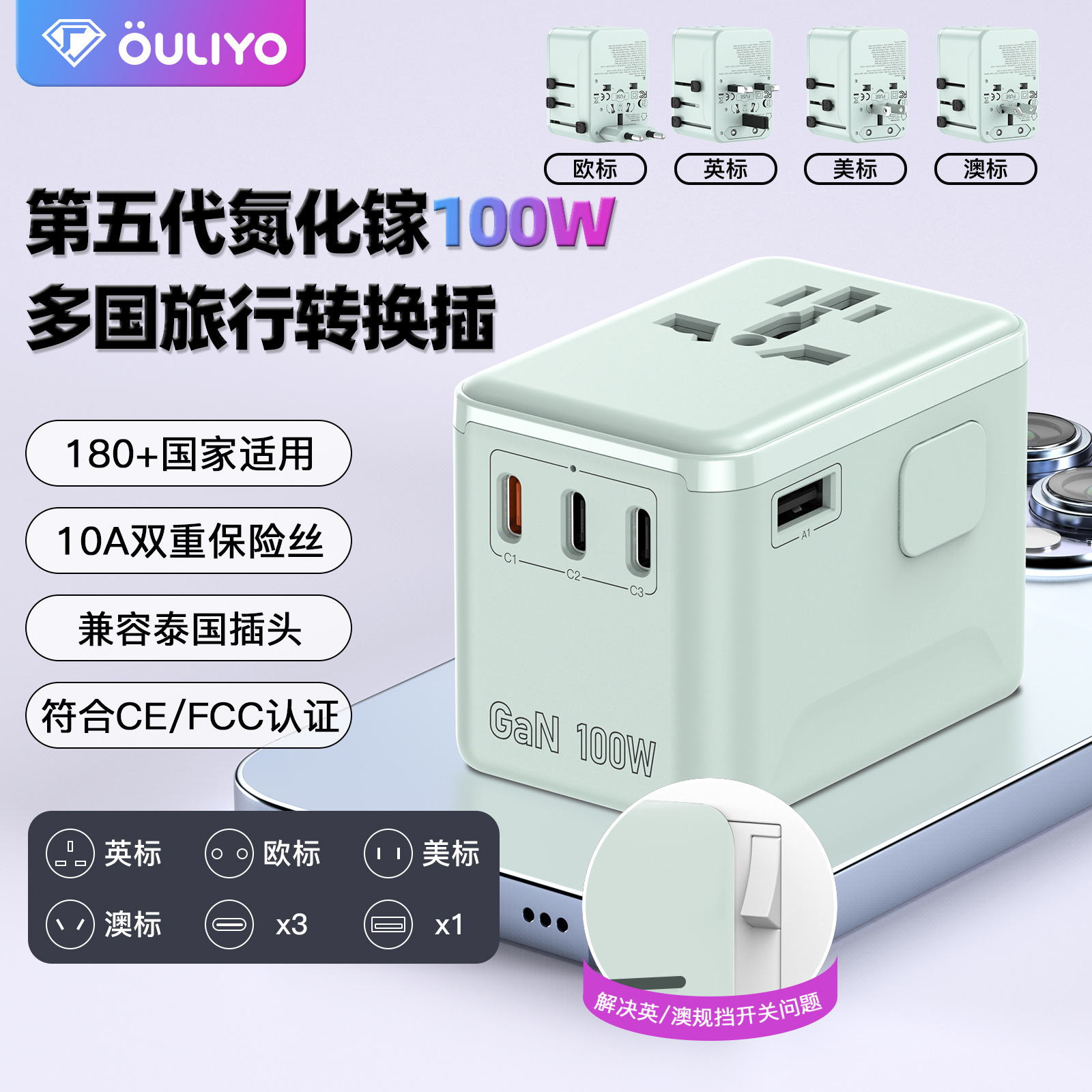 Global travel multifunctional PD100W gallium nitride multi-port conversion plug fast charging US gauge socket converter