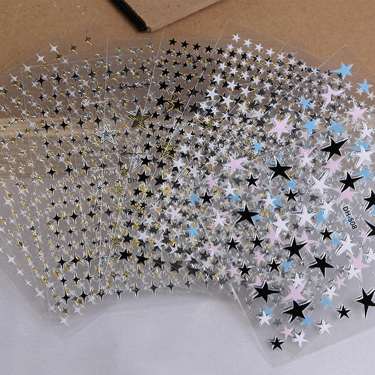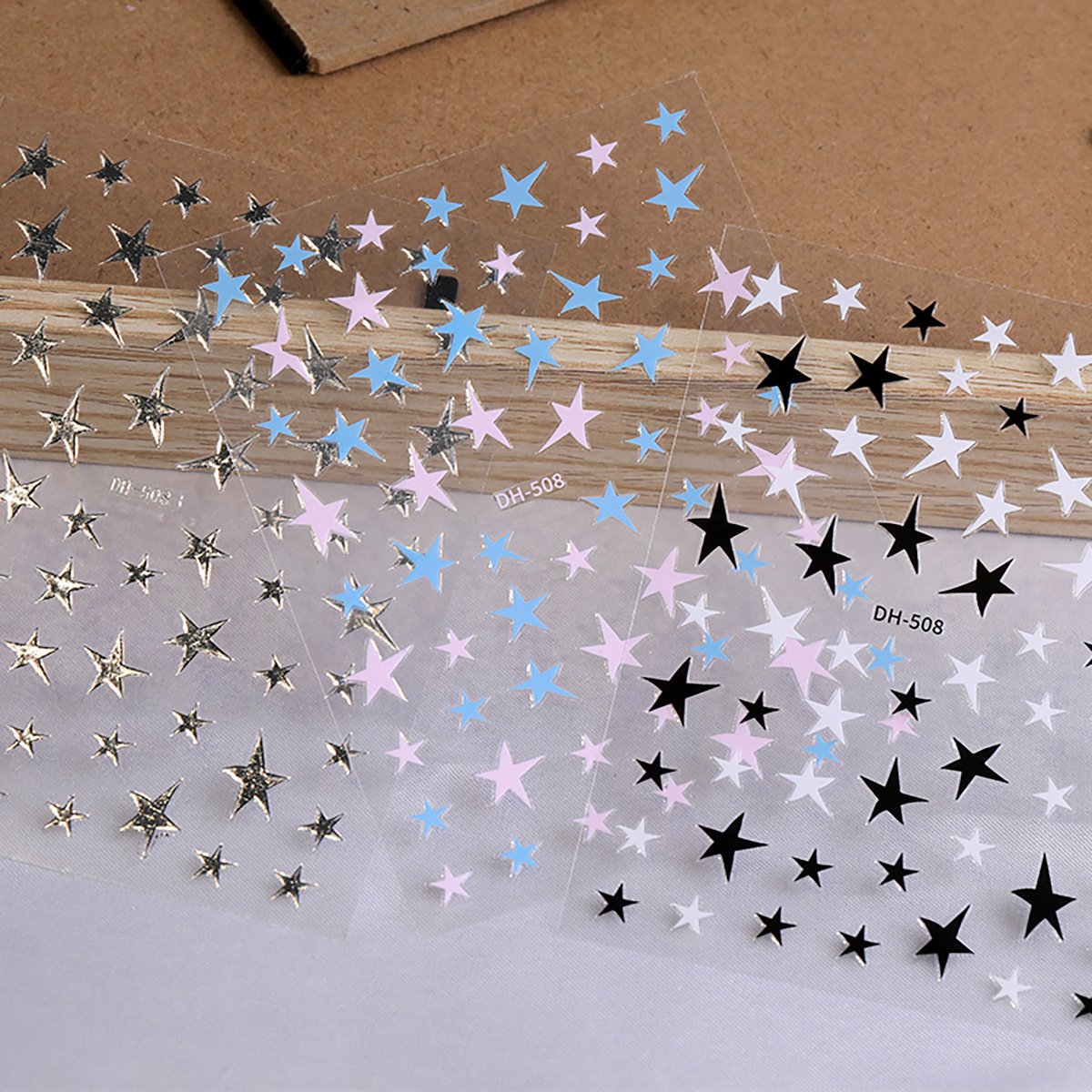 Gold and Silver Black and White Four Mans Star Nail Sticker Waterproof 3D Five-pointed Star Nail Sticker Back Gummed Paper Nail Art Jewelry DH