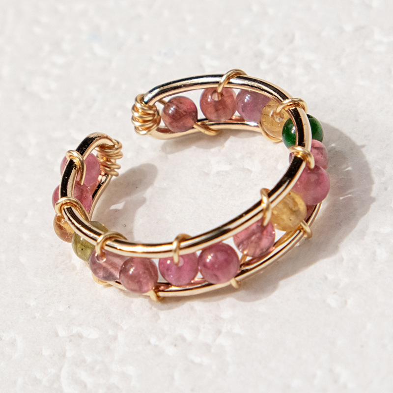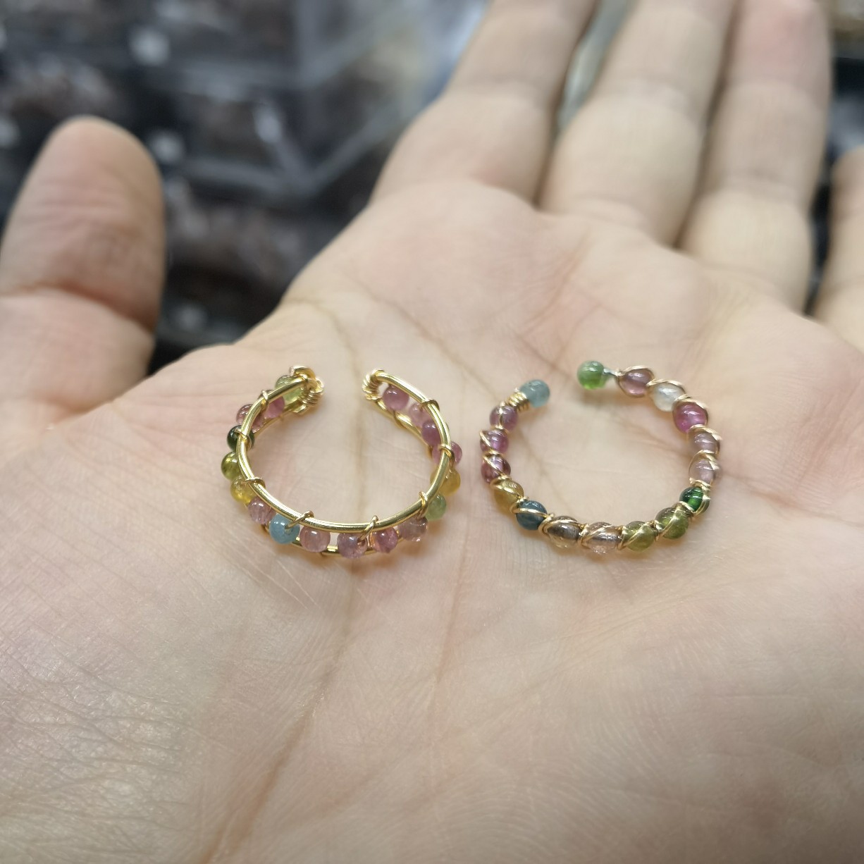 Gold wrapped handmade natural rainbow tourmaline ring ring ring jewelry wholesale