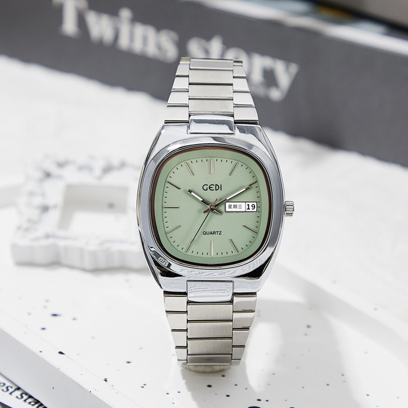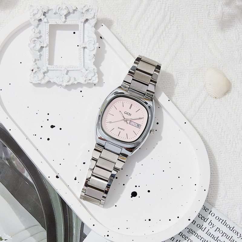 Goldie Simple Double Calendar Women's Watch High-value Solid Steel Waterproof Wrist Watch Women's Niche Oval Quartz Watch