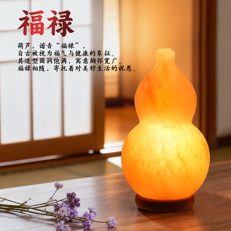 Gourd Salt Lamp Himalayan Mineral Crystal Salt Lamp Foyer Living Room Bedroom Rechargeable Table Lamp Ornament Night Light