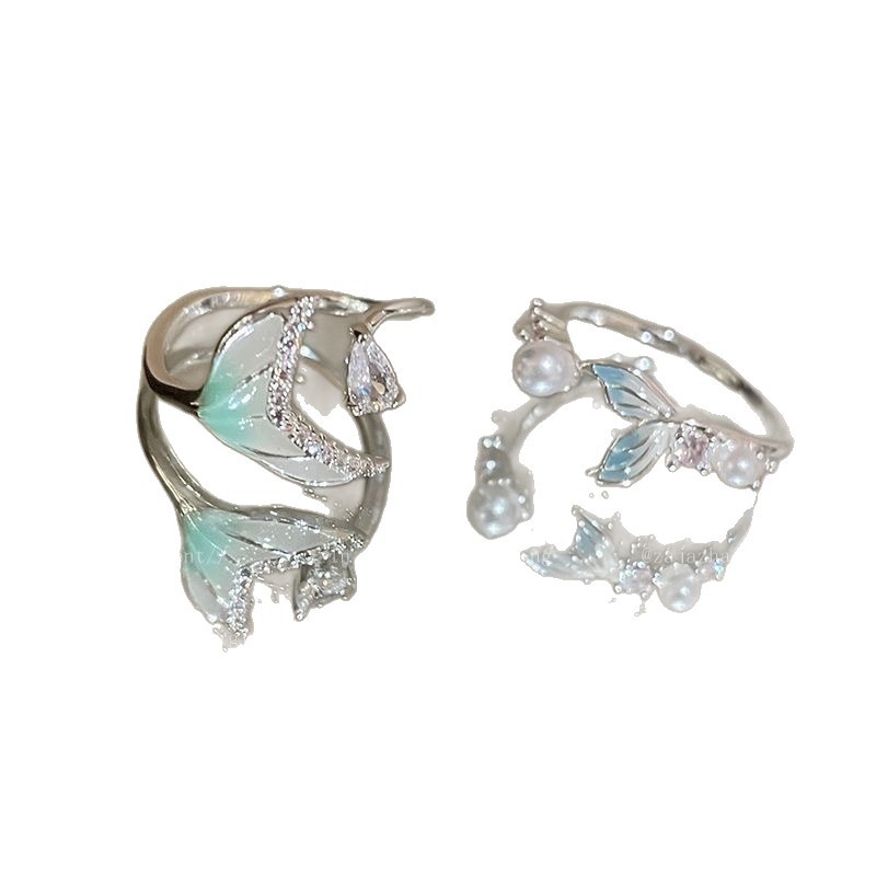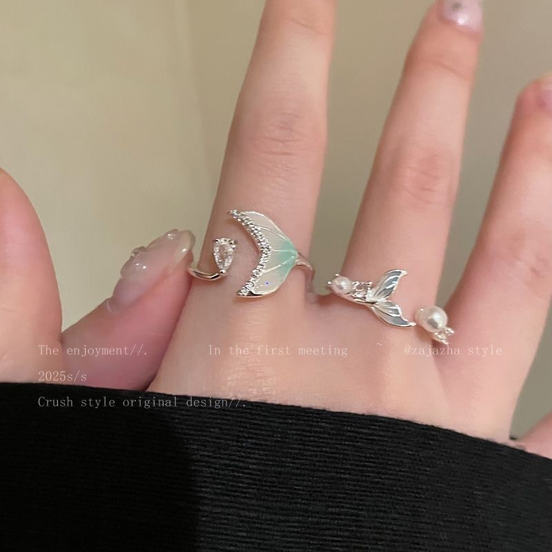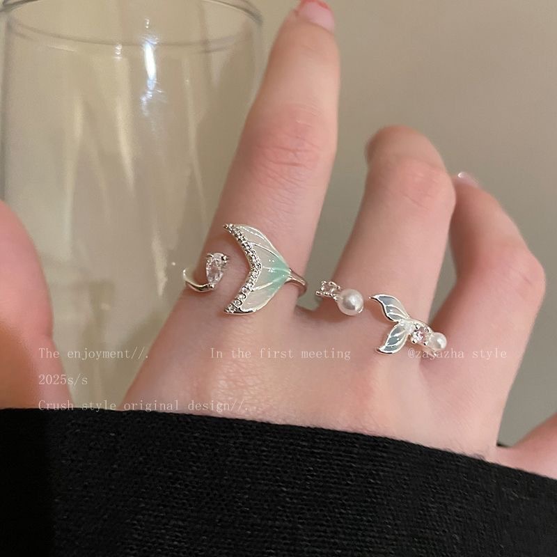 Gradient Fishtail Zircon Open Ring for Girls, Fashionable and Simple Design Index Finger Ring, Niche Exquisite and Versatile Ring
