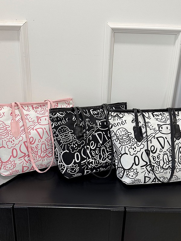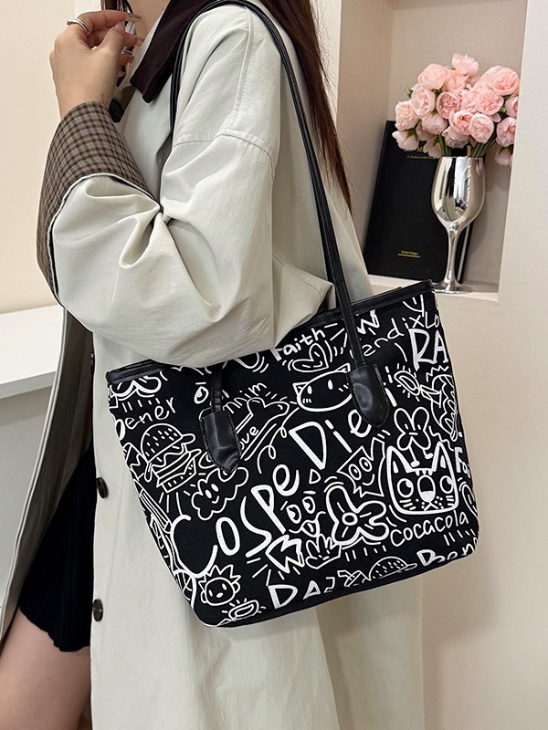 Graffiti Canvas Bag for Women 2025 New Casual Shoulder Bag Versatile Large Capacity Student Class Work Clothing Tote Bag