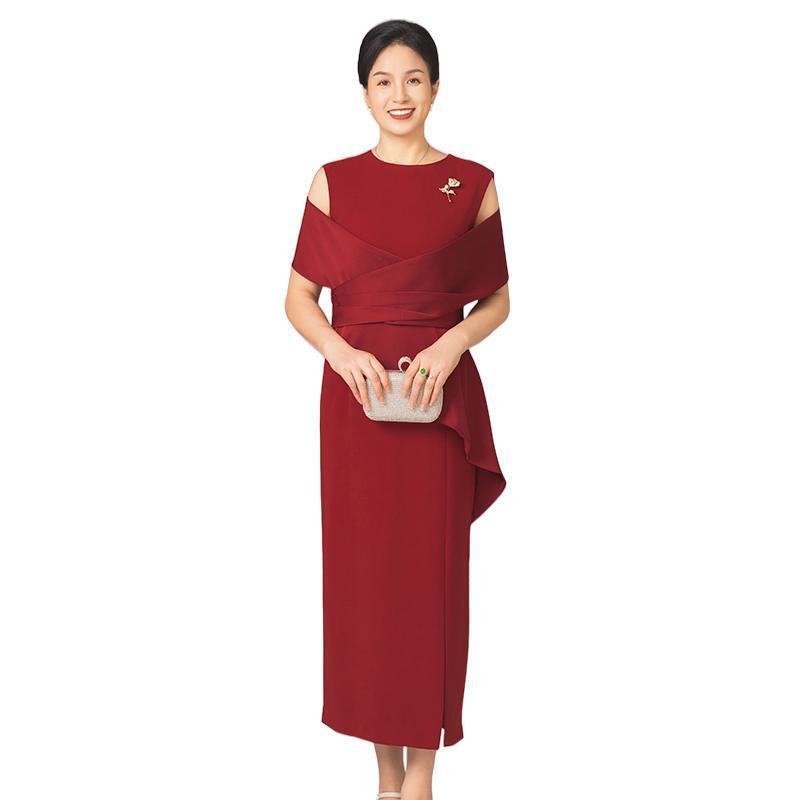 Grandma Xi's Toast Dress Cheongsam Wedding Mother's Wear Sleeveless High-Waisted Mid-Length Over-The-Knee Dress Evening Dress Summer Women