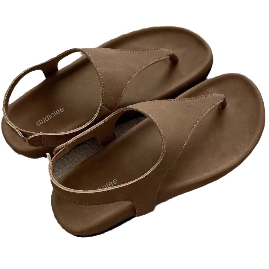 Grape Mom's Same Style Minimalist Elegant Retro Thong Sandals Vacation Flat Niche Roman Style Sandals for Women