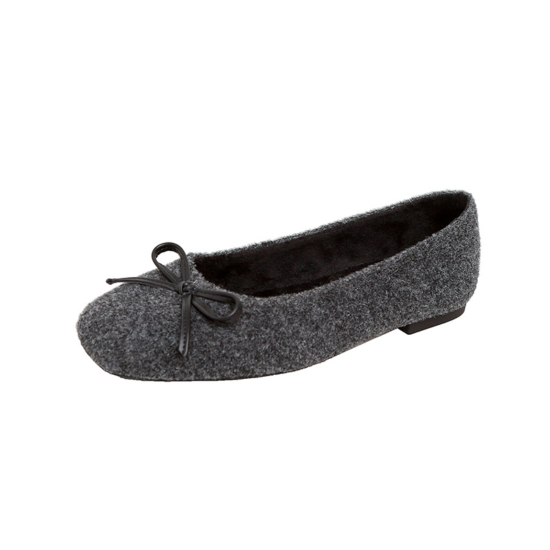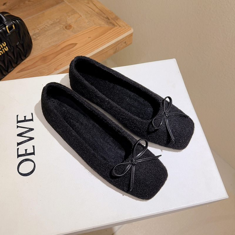 Grape Mom's Same Style, Chic and Versatile Autumn and Winter Bowknot Plush Warm Shallow Ballet Flats for Women in Spring and Autumn