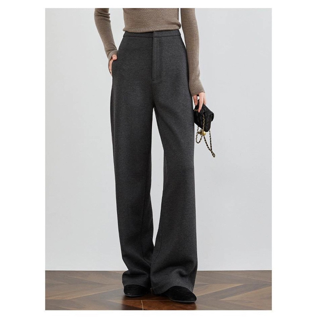 Gray Silk Cashmere Suit Woolen Pants for Women 2025 Autumn and Winter High-End Draped Casual Straight Narrow Wide-Leg Pants