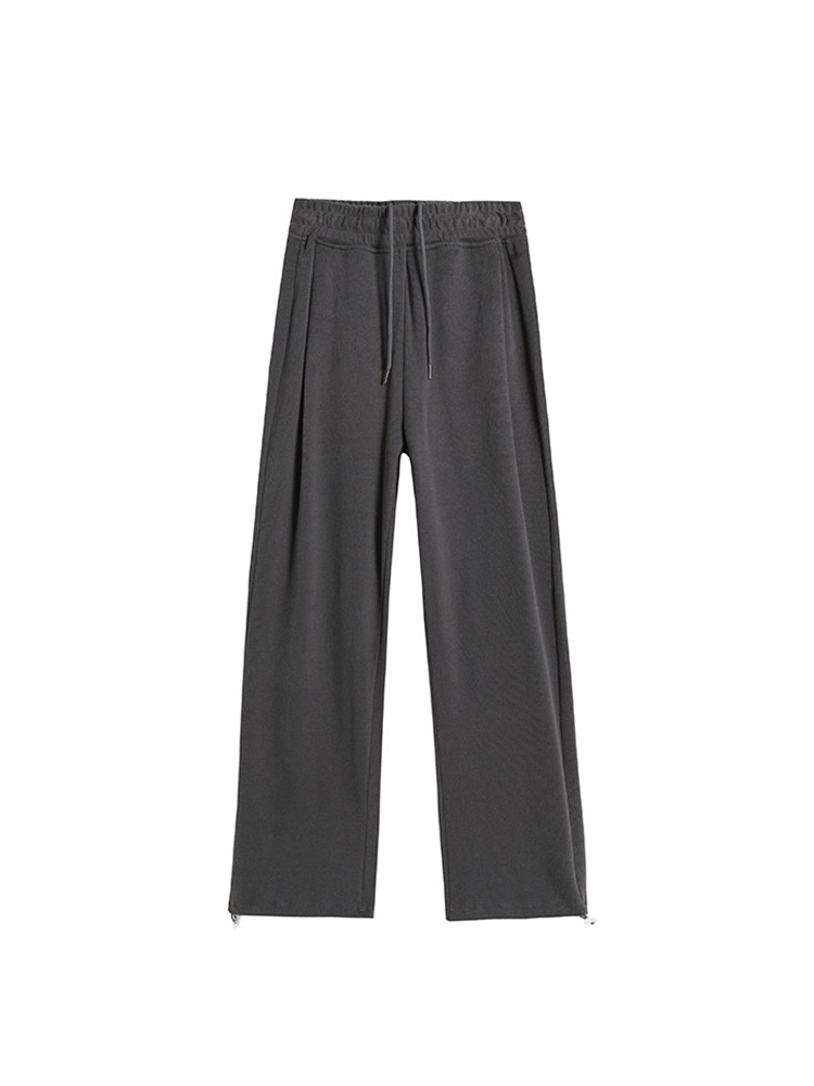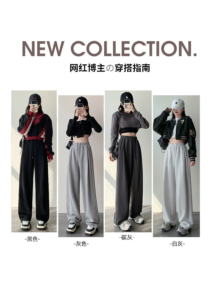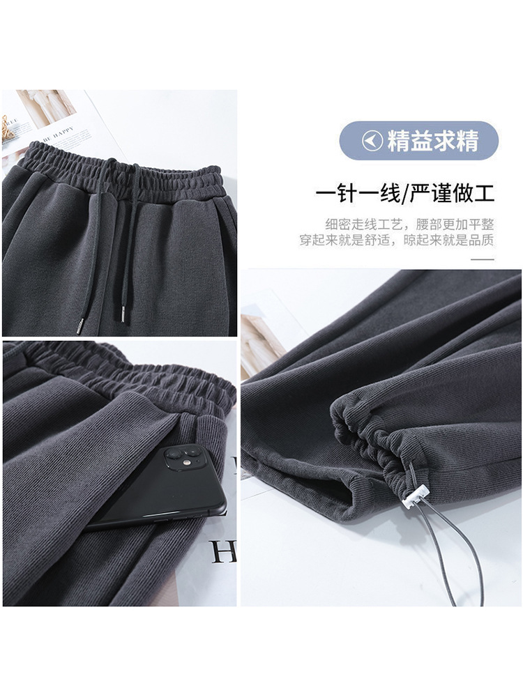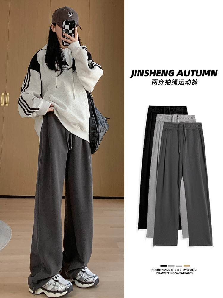 Gray Sweatpants for Women 2025 Autumn and Winter Fleece-Lined High-Waisted Slimming Drape Straight-Leg Drawstring American-Style Sweatpants for Women
