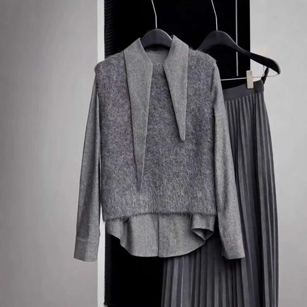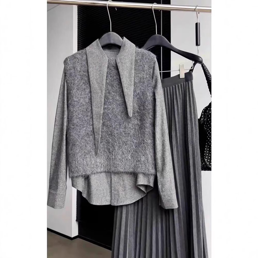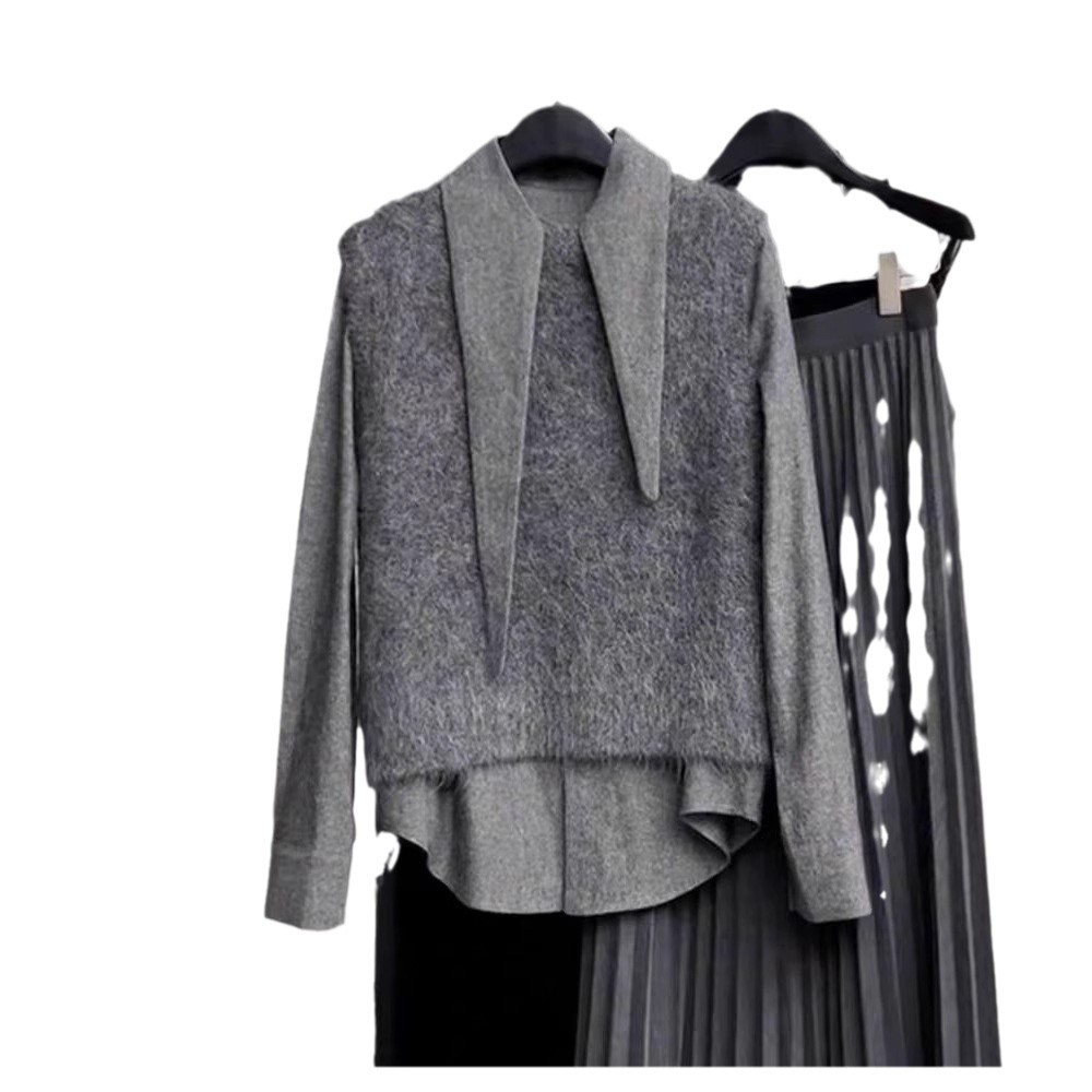 Gray this year's fashion temperament beautiful gray long sleeve bottoming shirt knitted vest suit winter