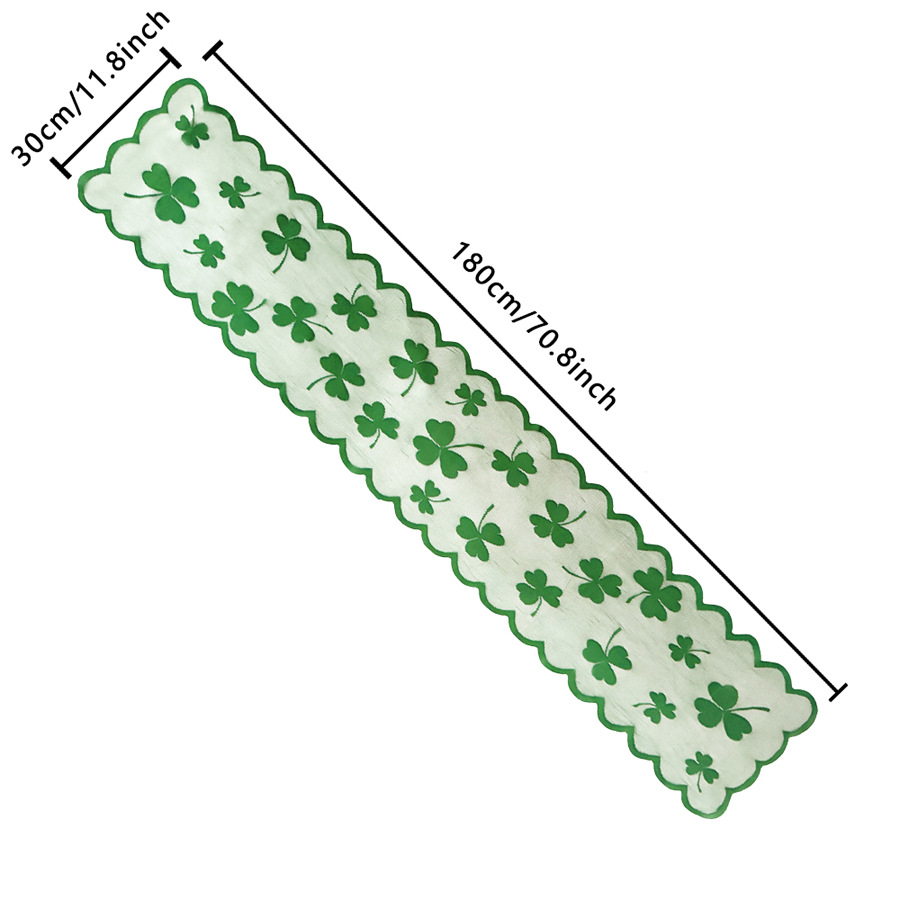 Green Clover Lace Table Runner-St. Patrick's Day Decorative Rectangular Polyester Material Home Decor