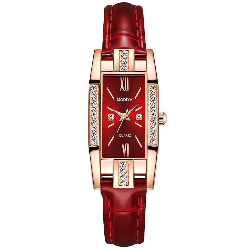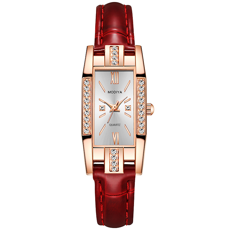 Green Watch for Women, Wholesale Niche Style, Internet Celebrity Rhinestone Live Streaming Promotional Small Square Quartz Watch with Leather Strap for Women