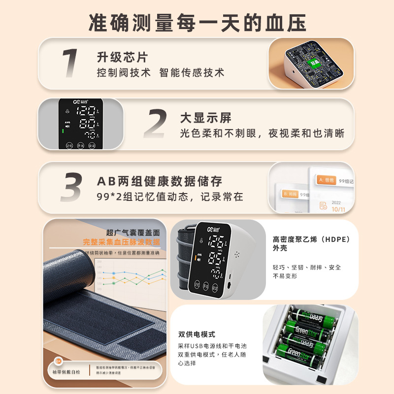 Guanchang sphygmomanometer touch screen LED HD display household electronic sphygmomanometer blood pressure elderly health monitoring intelligence