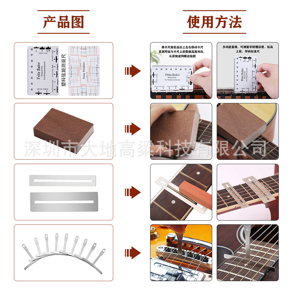 Guitar Tool Kit, Musical Instrument Repair Tool, Neck Adjustment, Pillow Grinding, String Distance Measurement, 45-Piece Set