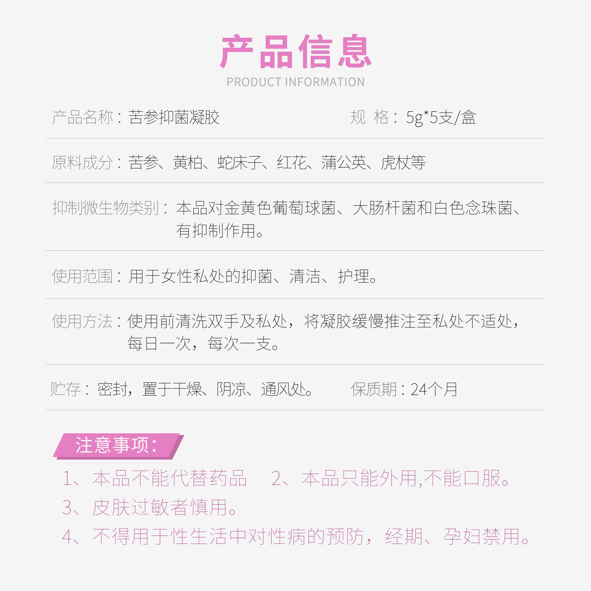 Gynecological Care Antibacterial Gel Women's Private Soothing Health Care Herbal Sophora Flavescens Plant Extract Source Factory Wholesale