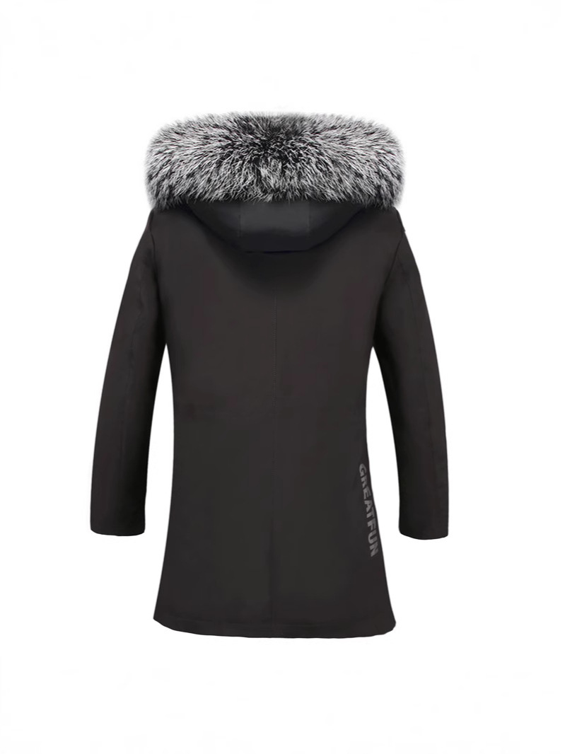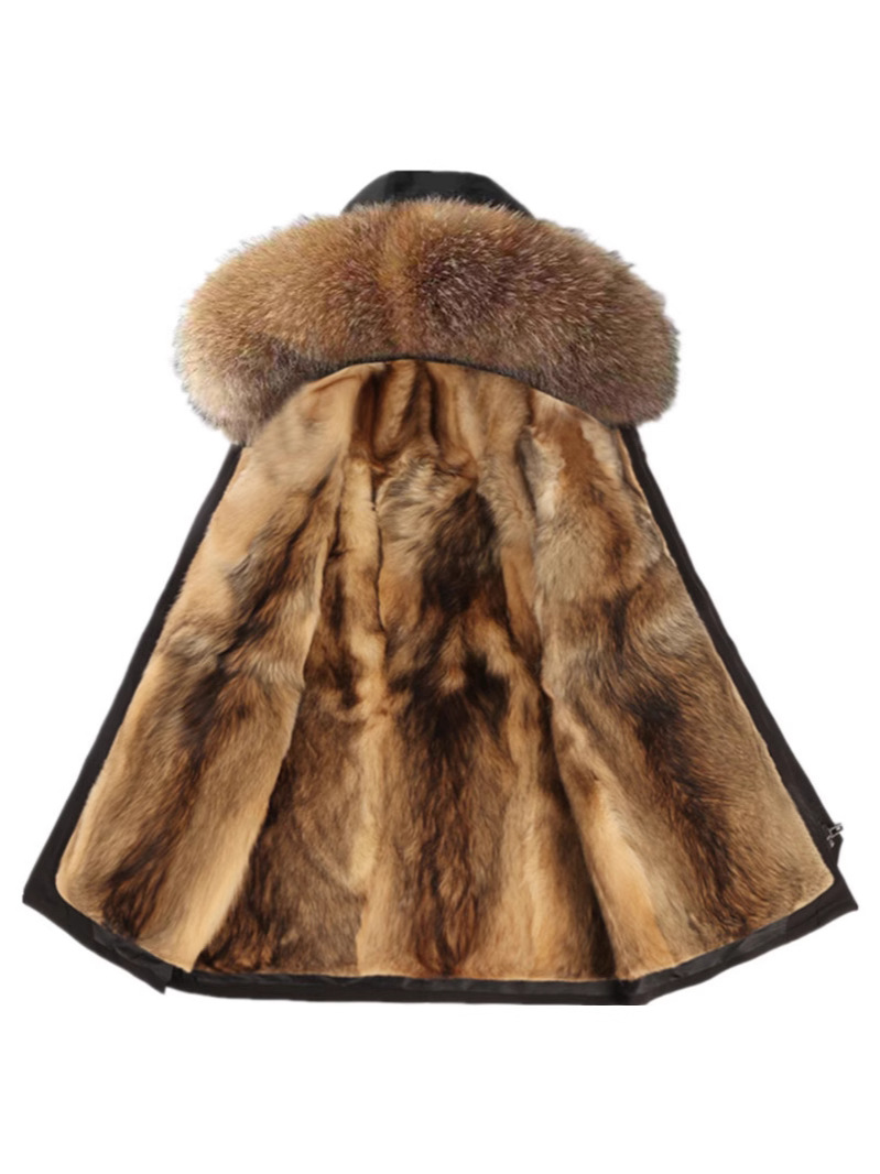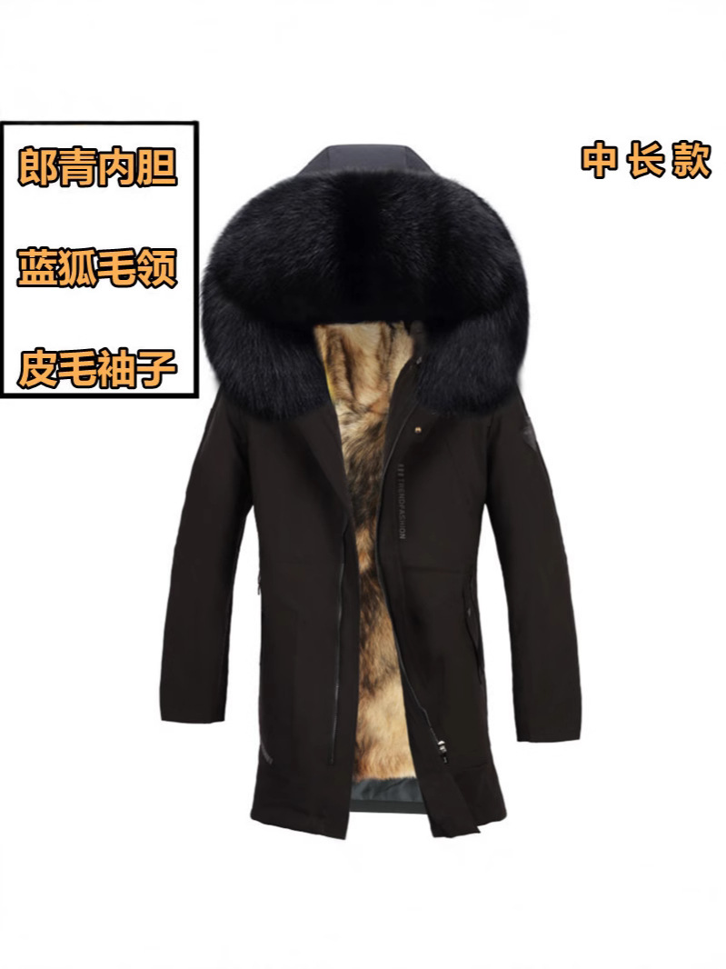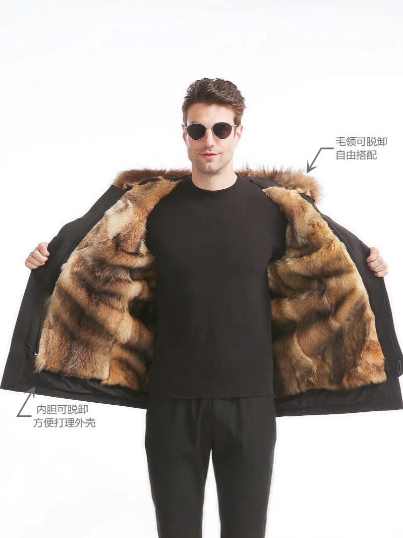 Haining Leather Grass to Overcome Men's Fur One Fox Raccoon Fur Collar Mid-length Coat Cold-proof Coat