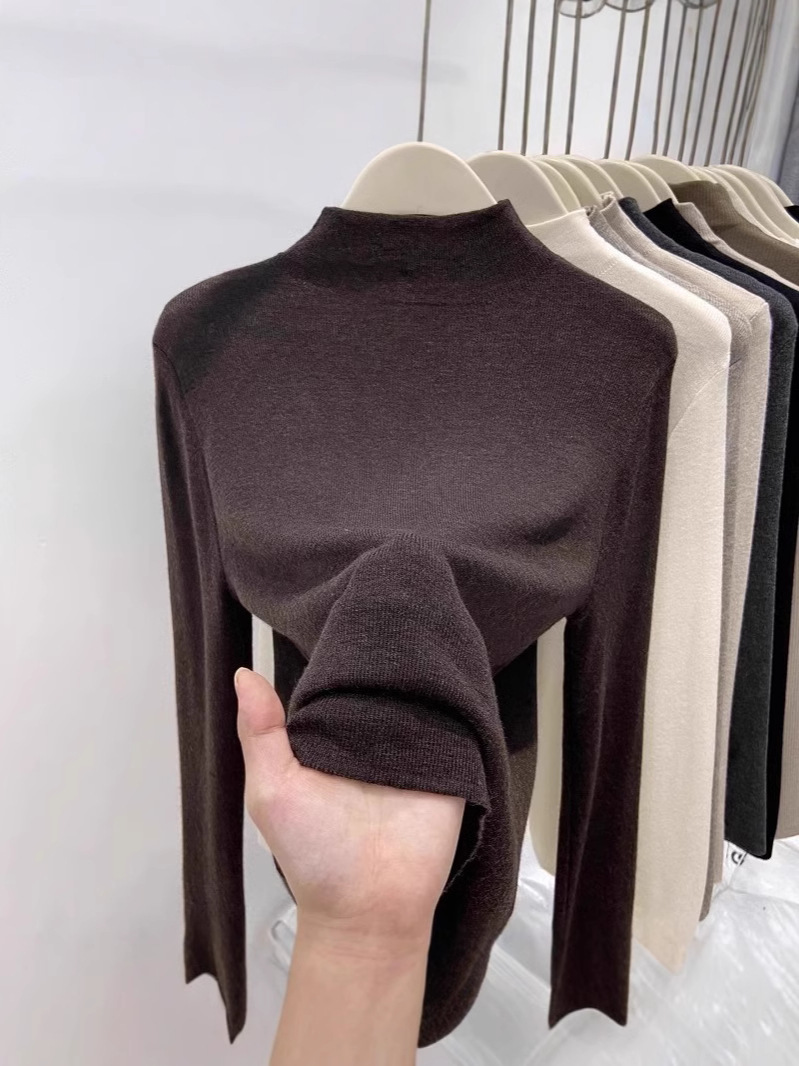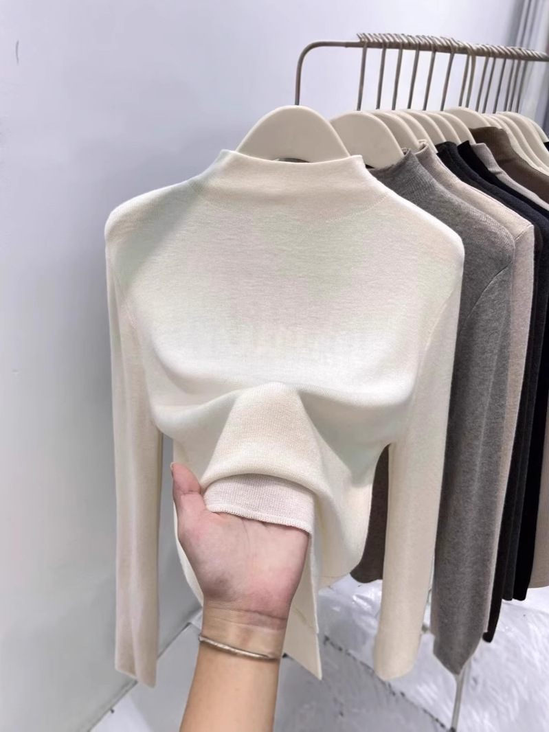 Half-high Collar Spring and Autumn Soft Waxy Thin Base Shirt Women's 2025 New Slim-fit Western-style Mid-neck Sweater Inner Top
