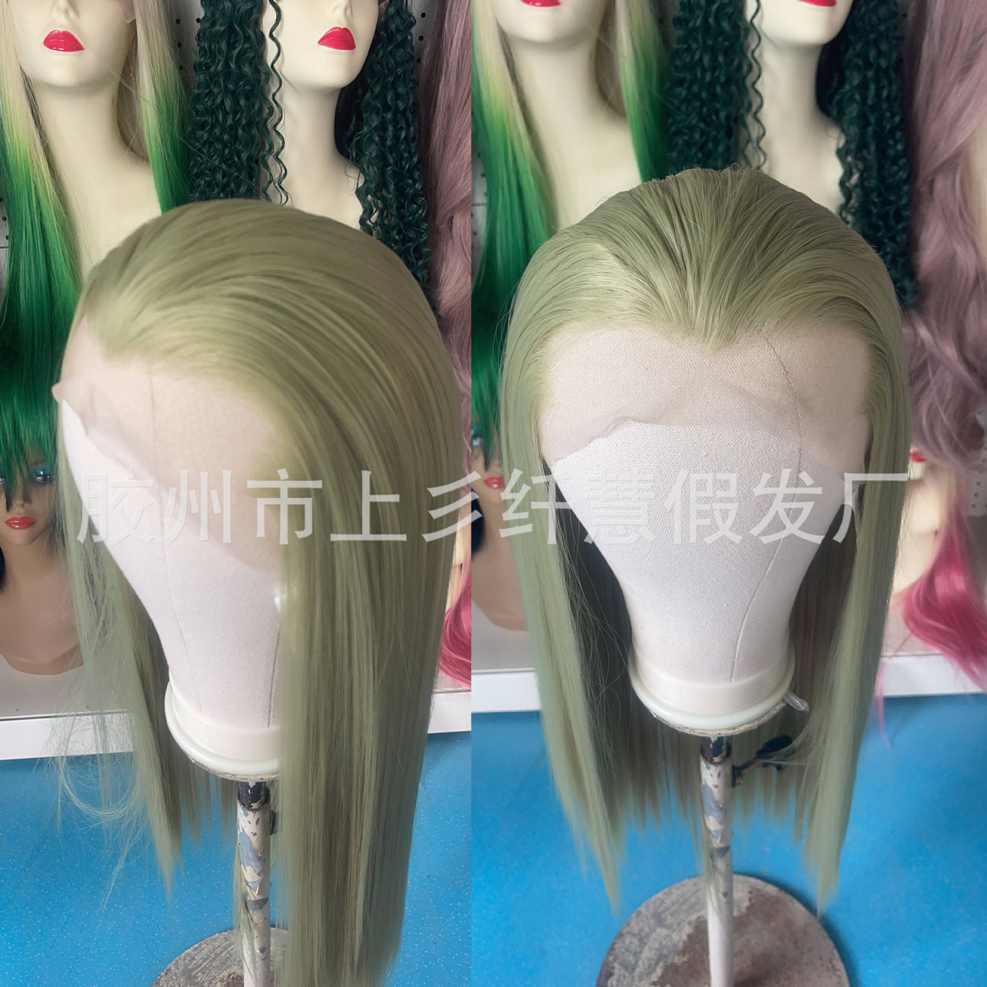 Han Dynasty Boy's Front Lace Beauty Pointed Long Straight Hair Hand Hook Wig Headgear Ancient Style COStume COS