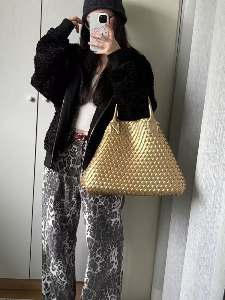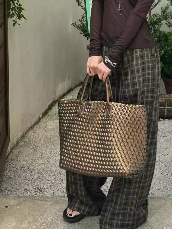 Handmade Woven Bag Portable Large Bag Women's 2024 New Large Capacity Tote Bag Travel Bag All-match Shoulder Bag