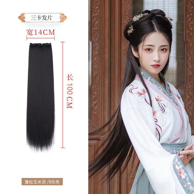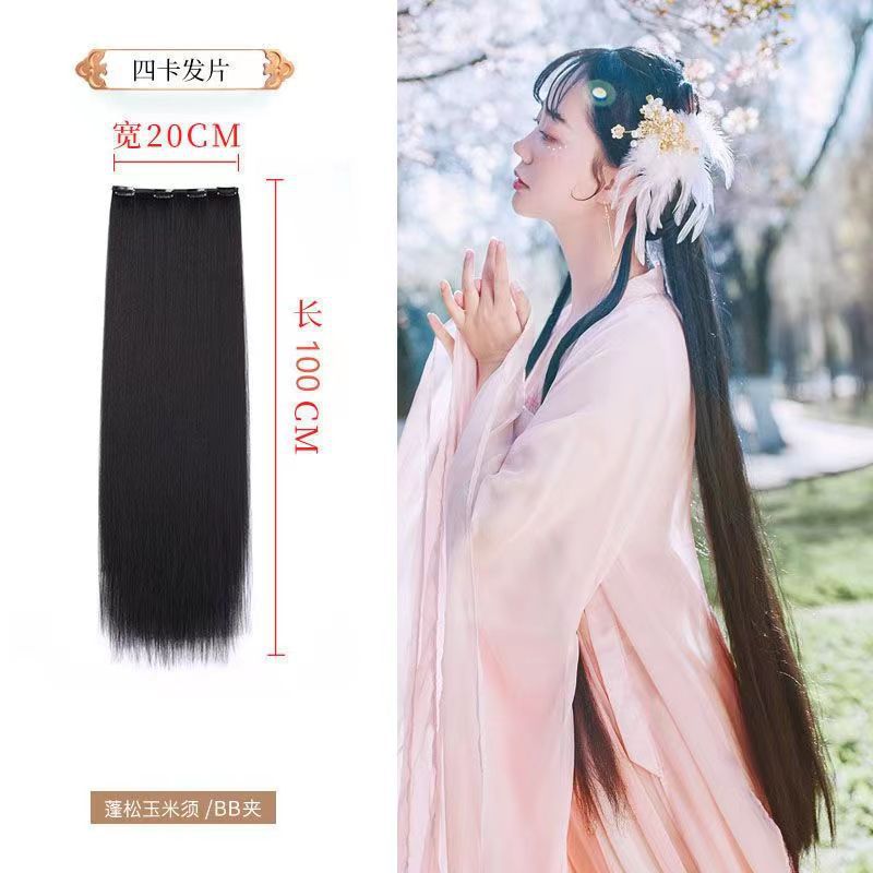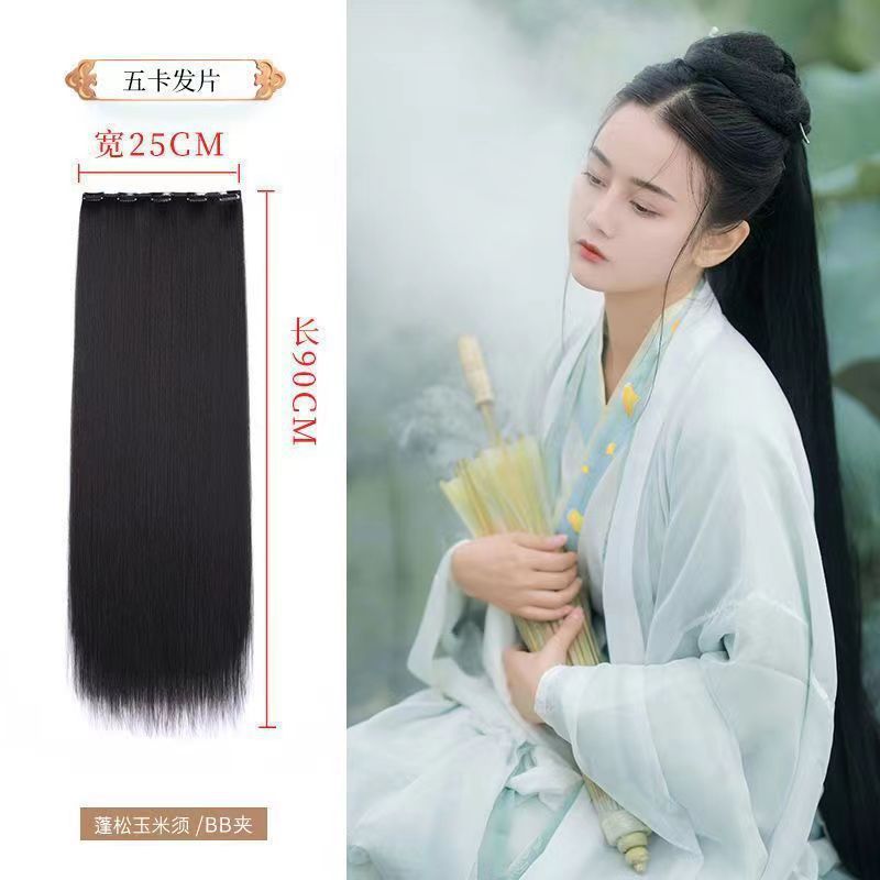 Hanfu headdress, ancient costume, corn whisker, wig, long straight hair, one-piece hair row, Xuchang wig
