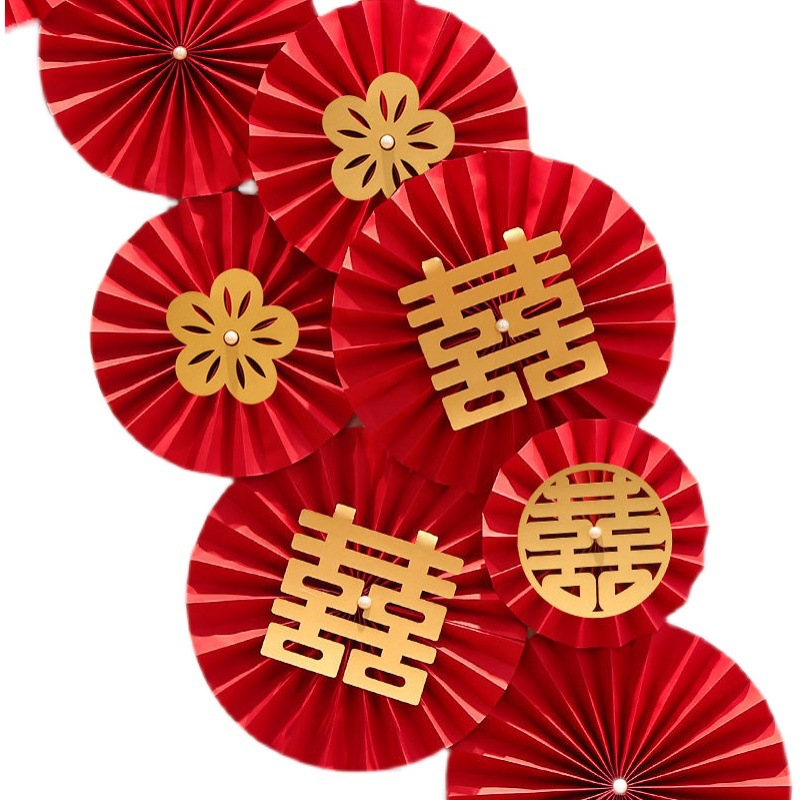 Happy word wedding new house decoration wedding room decoration paper fan flower man woman's house fan flower creative simple atmosphere bedroom