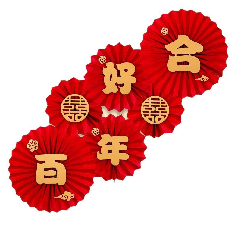 Happy word wedding new house decoration wedding room decoration paper fan flower man woman's house fan flower creative simple atmosphere bedroom