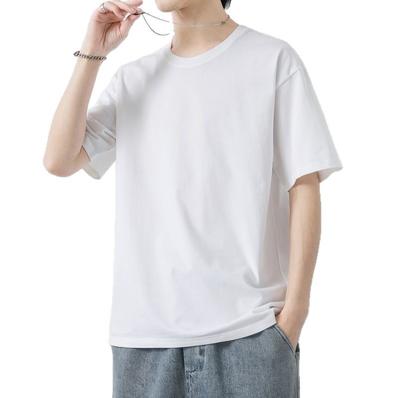 Heavy Weightweight T-Shirt Fashionable 180g Short-Sleeved T-Shirt Manufacturer Dropshipping Men's Round Neck Black and White Half-Sleeved Casual Loose Pure Color T-Shirt