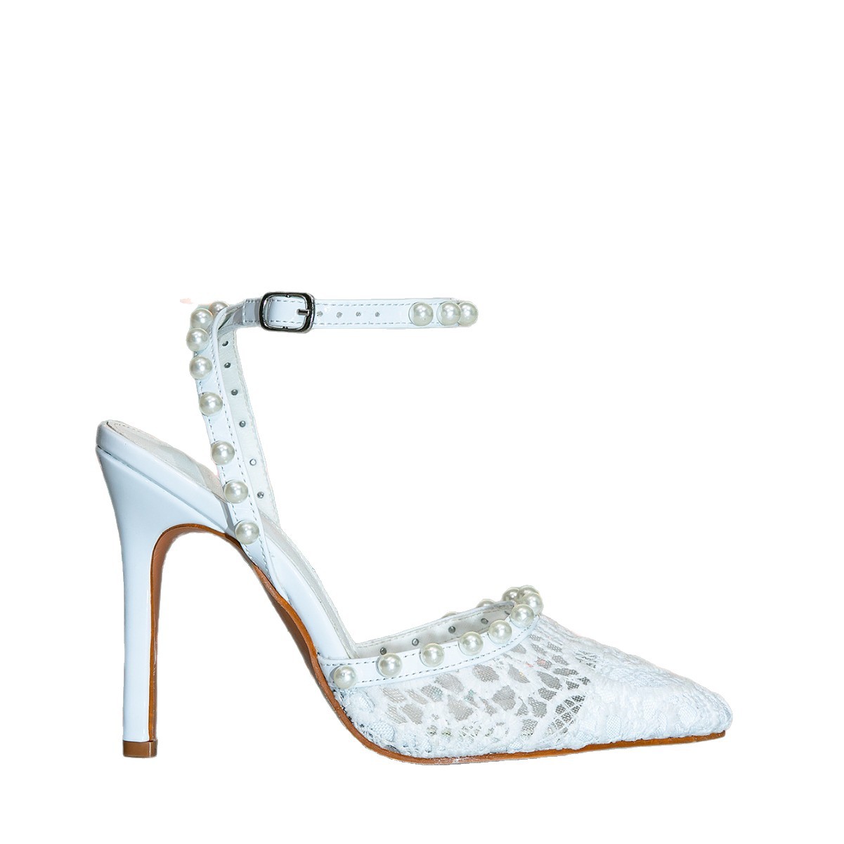 Heels Pointed Toe Pearl Women's Sandals with Sweet Straps and Skirt Hollow Bridesmaid Bag with Skirt Flats