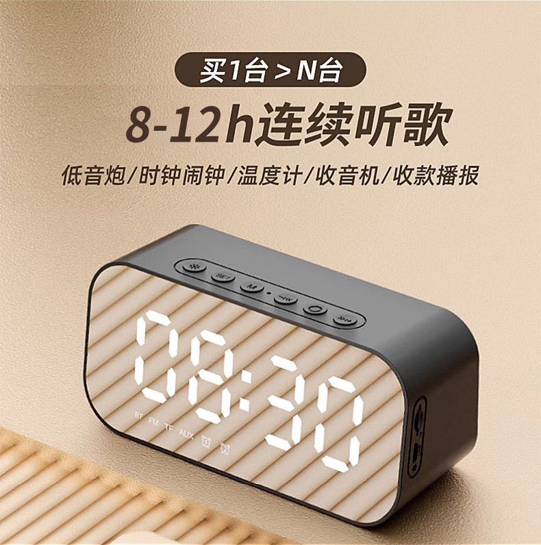 Hewitt M3 Desktop Alarm Clock Speaker Home Radio Mirror Wireless Clock Bluetooth Speaker Gift