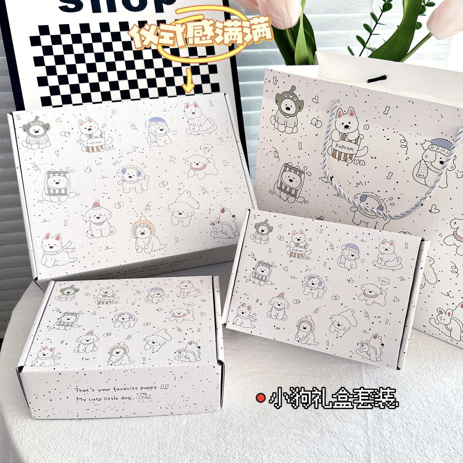 High beauty value ins cute puppy gift box birthday gift box gift storage box cute packaging box gift bag