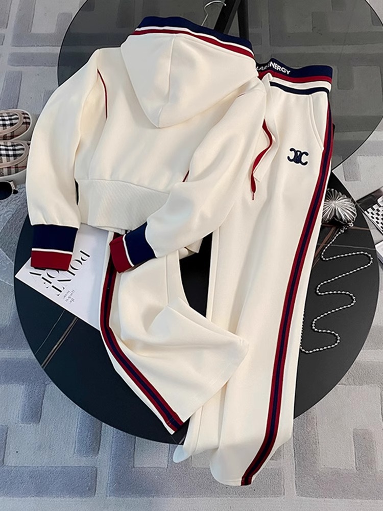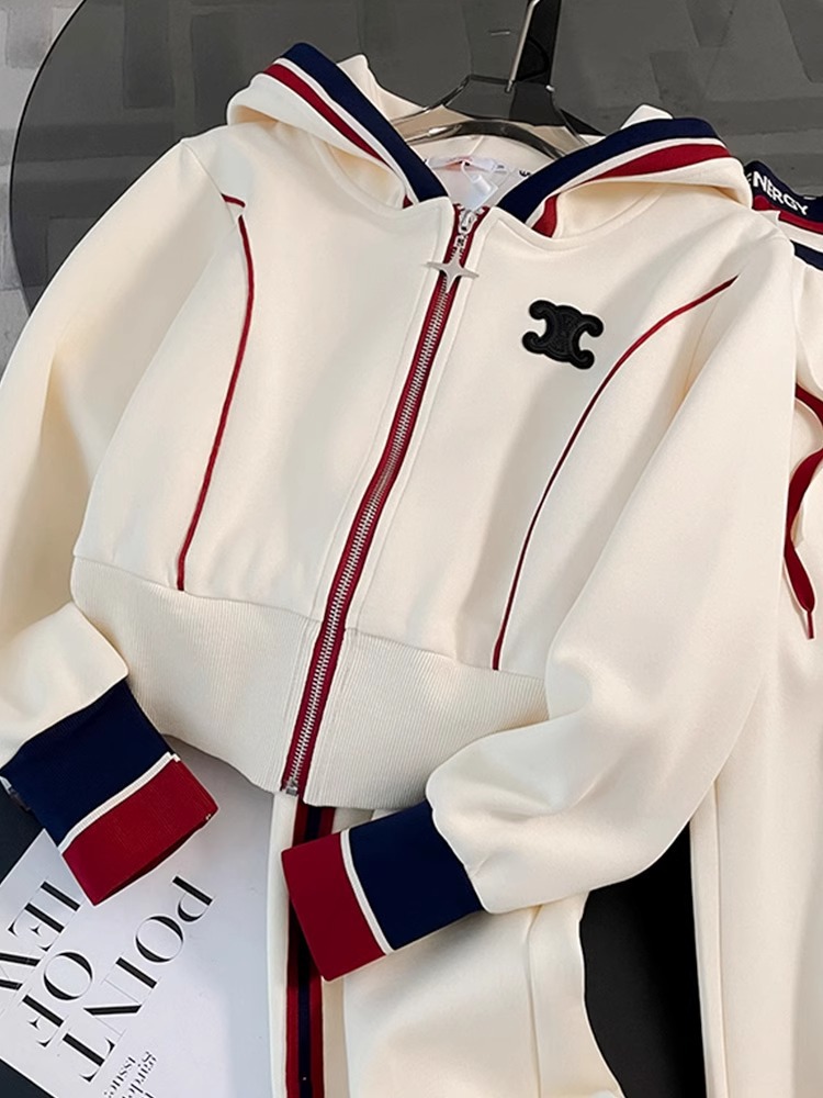 High-end brand casual sports suit women's spring 2024 new fashion European goods hooded sweater straight pants two-piece set
