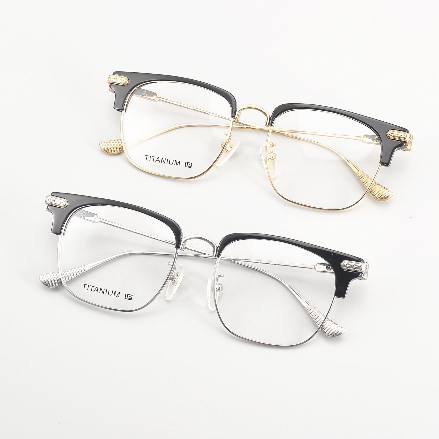 高端精雕设计镜腿男士眉毛架镜框纯钛商务平光镜女大脸显瘦眼镜框