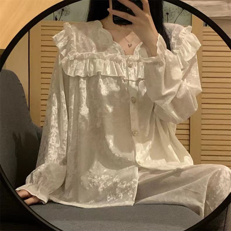 High-end Korean style gold velvet pajamas ins style pajamas women's autumn and winter diamond velvet Internet celebrity two-piece home wear