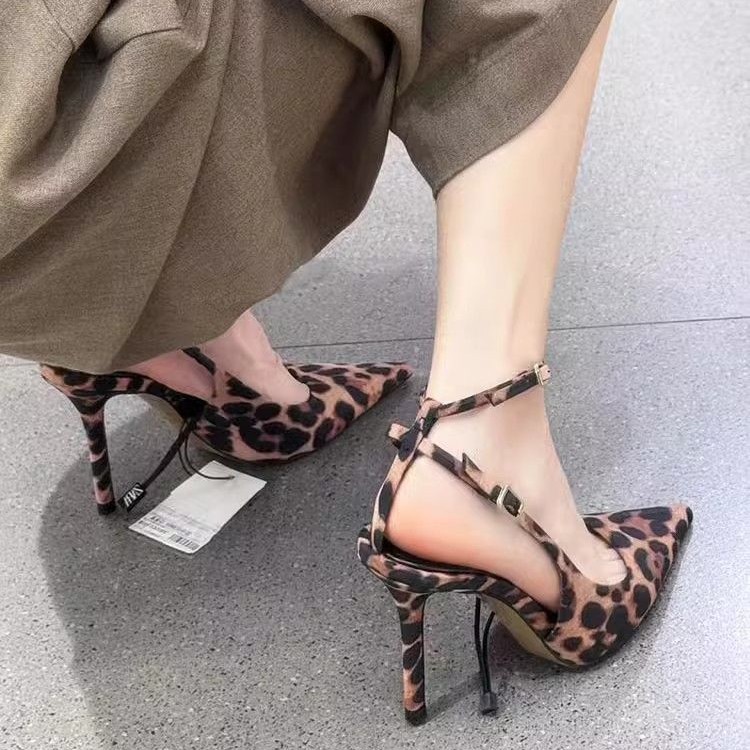 High-End Pointed Toe Stiletto Heels, Beautiful Royal Sister Sexy Sandals, Summer New Leopard Print Toe Professional High Heels