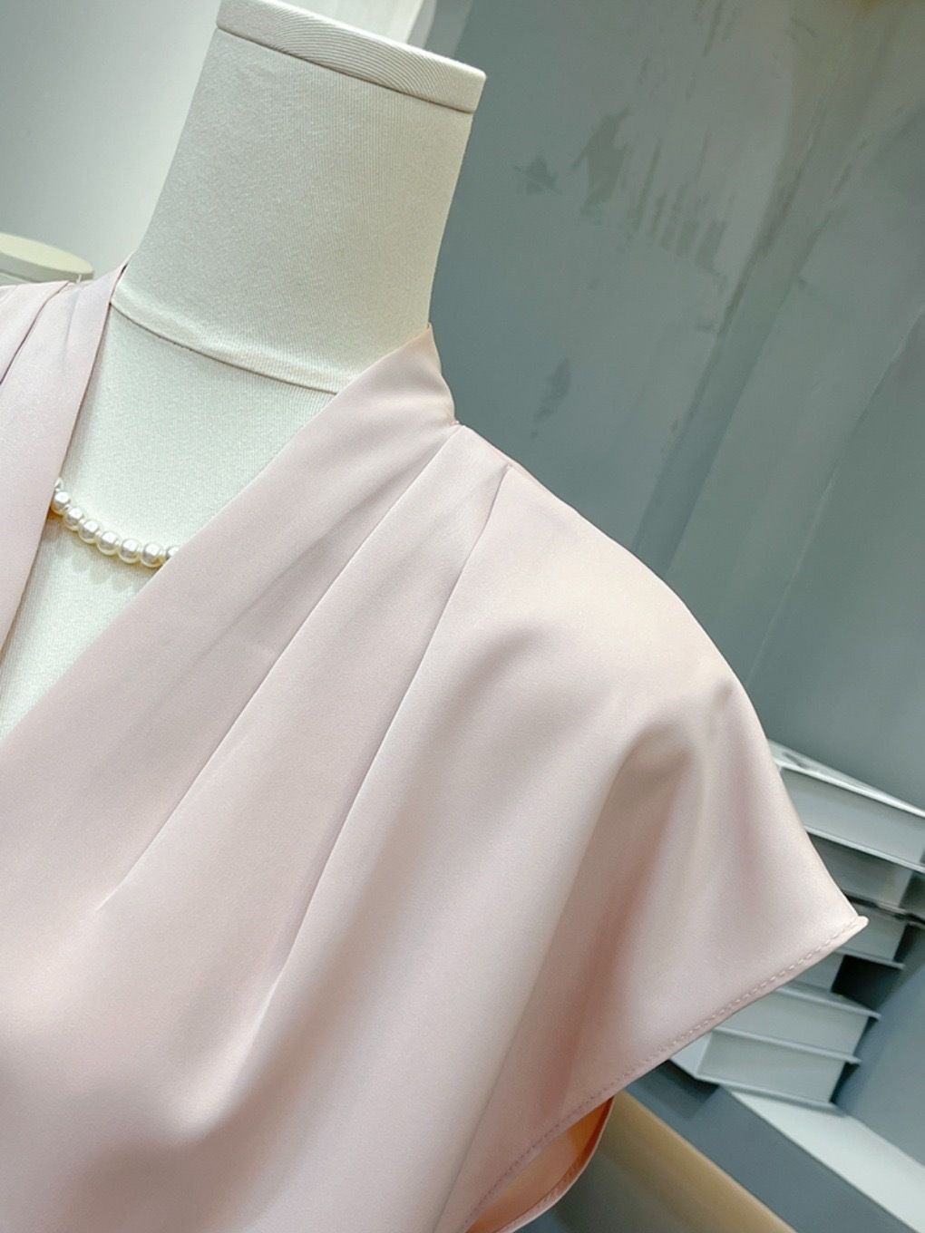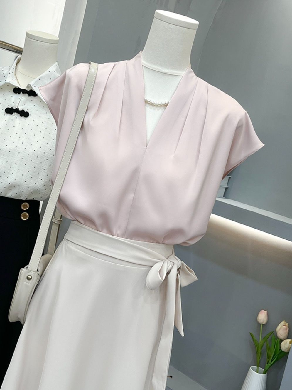 High-End Satin Acetate Shirt for Women with Niche V Neck Pure Color French Small Flying Sleeves Summer Top for Women
