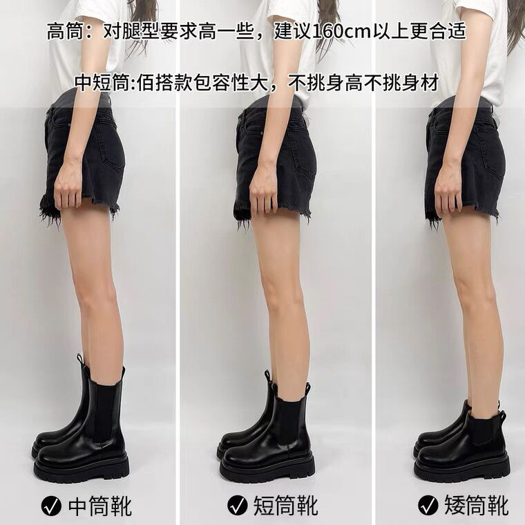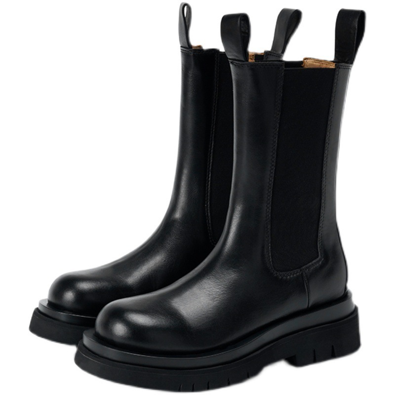 High-grade full cowhide ~ hidden height Martin boots Women's British style mid-calf thick bottom women's boots Chelsea boots cigarette boots