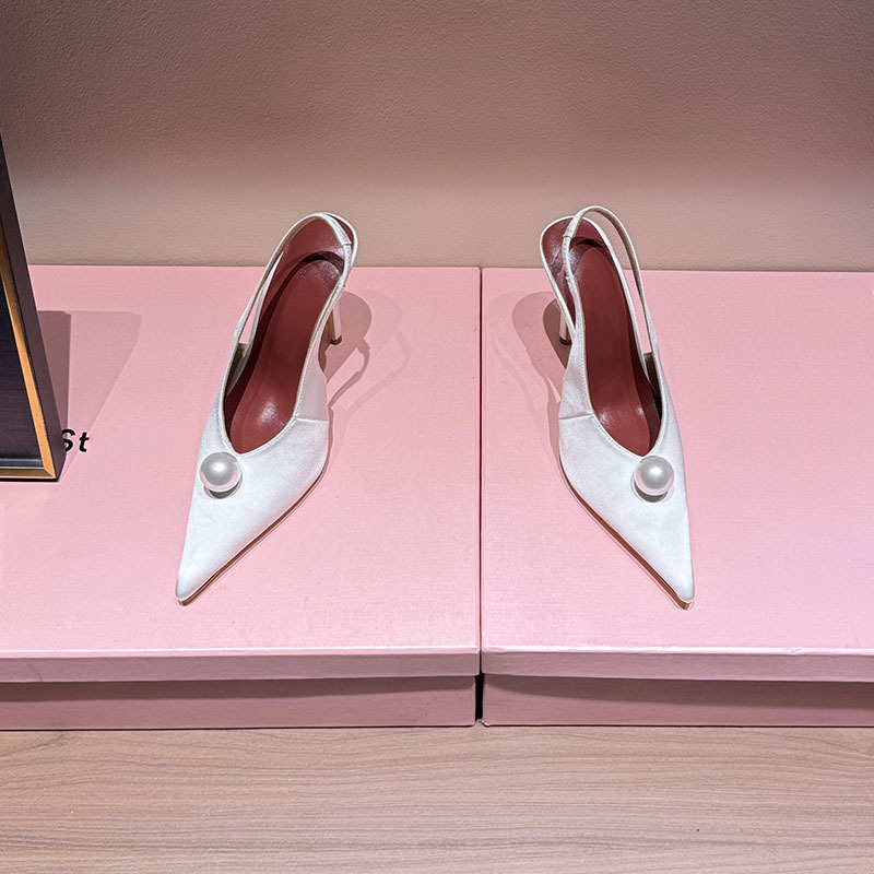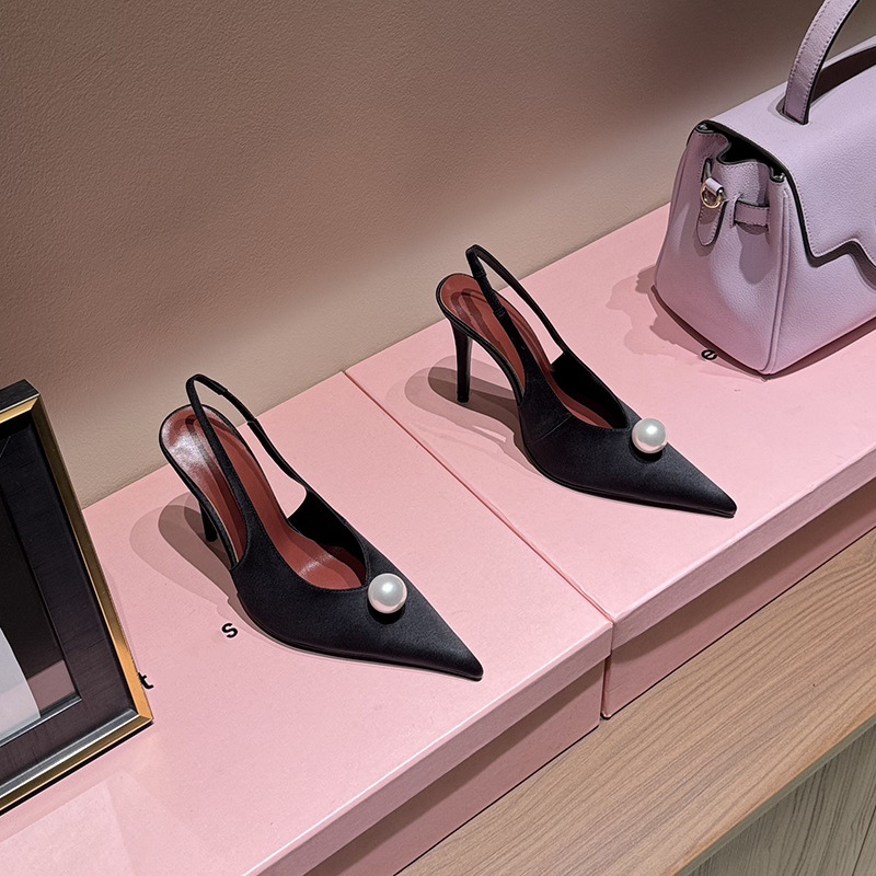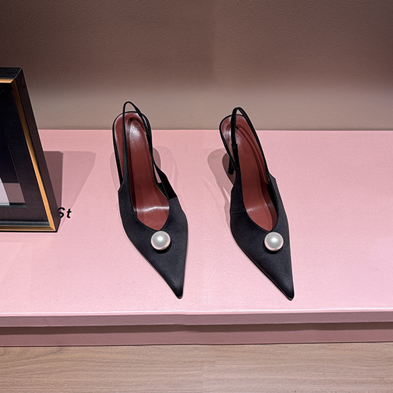 High-Heeled Pointed-Toe Genuine Leather Toe-Toe Slippers for Women with Stiletto Heels 2025 Spring New Roman Style Women's Shoes Pearl Fashion Sandals