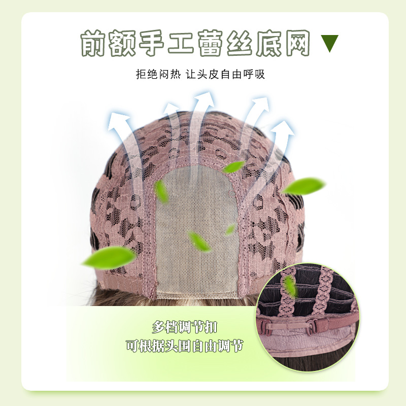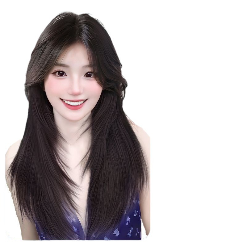 High-level Wig Women's Full Head Cover Front Lace Mid-character Long Straight Hair Natural Lightweight Breathable Whole Wig