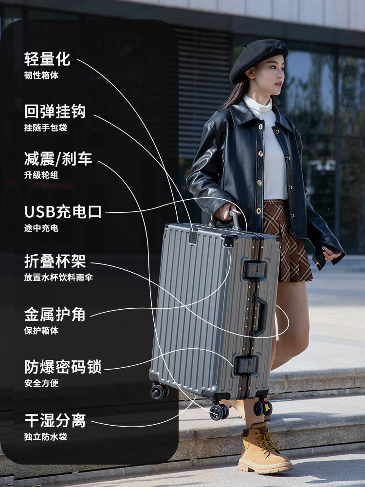 High-looking luggage for women 26 Strong durable thickened trolley case for men 24-inch travel boarding password case leather case