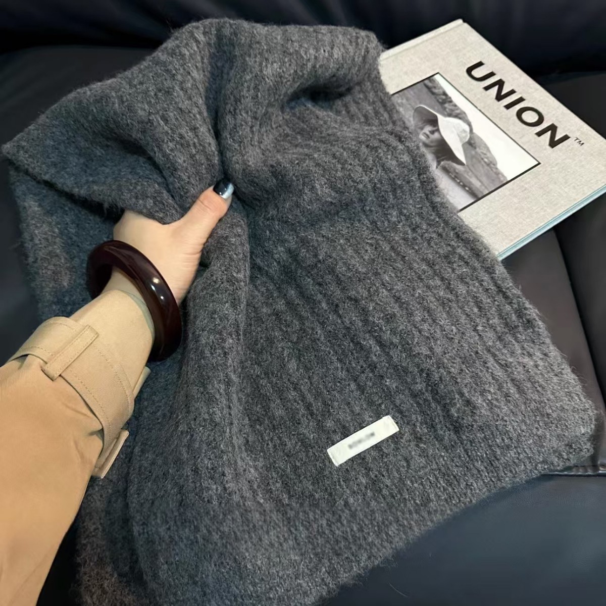 high quality ~ Korean version with wool cashmere gray scarf women autumn and winter warm couple shawl knitted scarf men