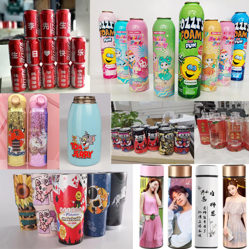 High Speed Automatic Cylinder UV Printer Tapered Plastic Wine Bottle Thermos 3d Embossed Cans Printing Machine