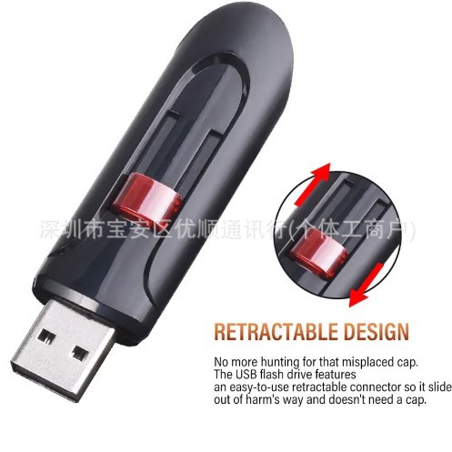 High Speed USB Flash Drive 128GB 64GB 32GB 16GB 8GB Plastic Retractable PenDrive Black