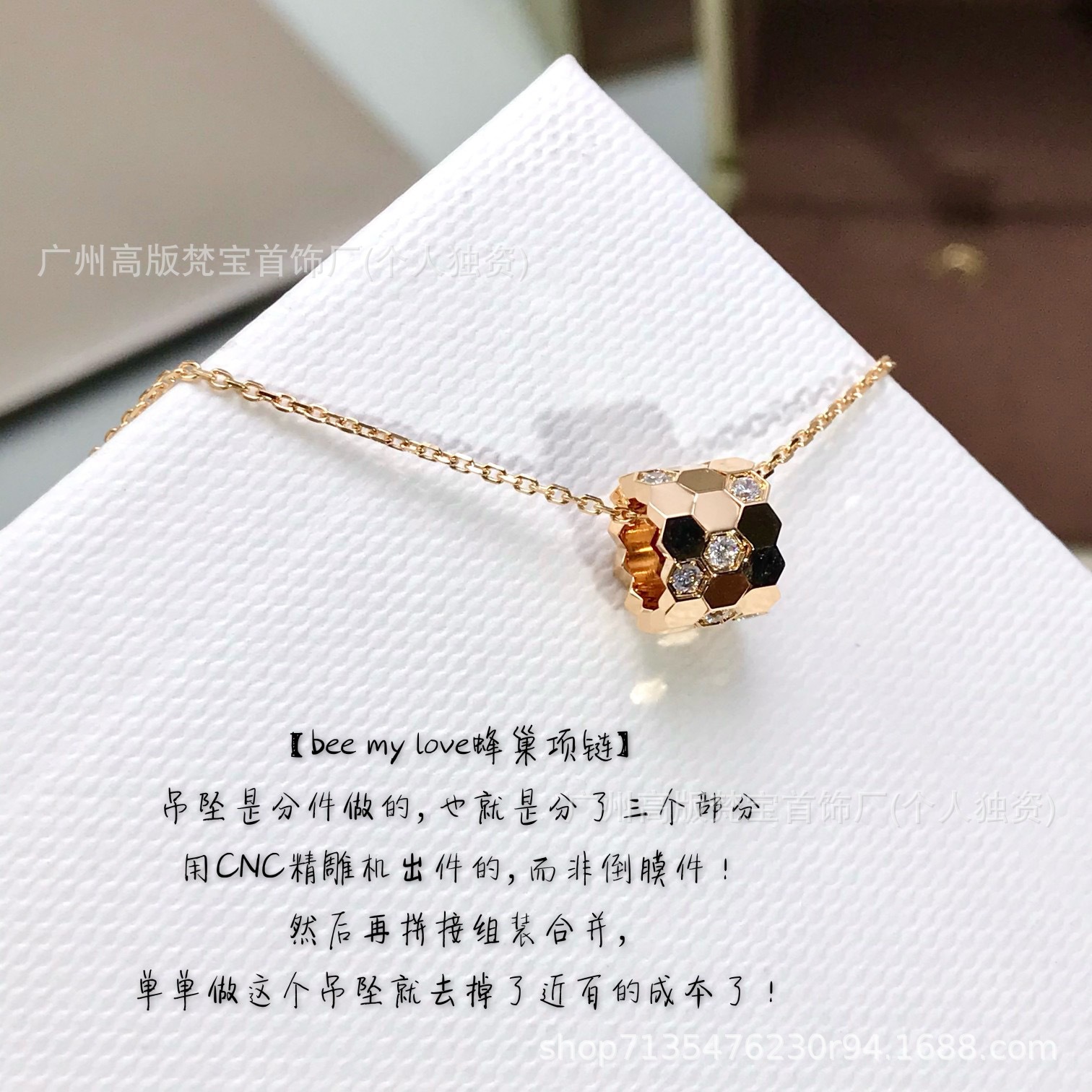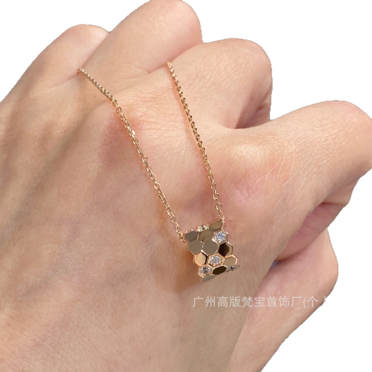 High Version Cnc Cut V Gold Shangmei Honeycomb Small Waist Necklace for Women 18K Thick Plated Diamond Clavicle Chain Does Not Fade