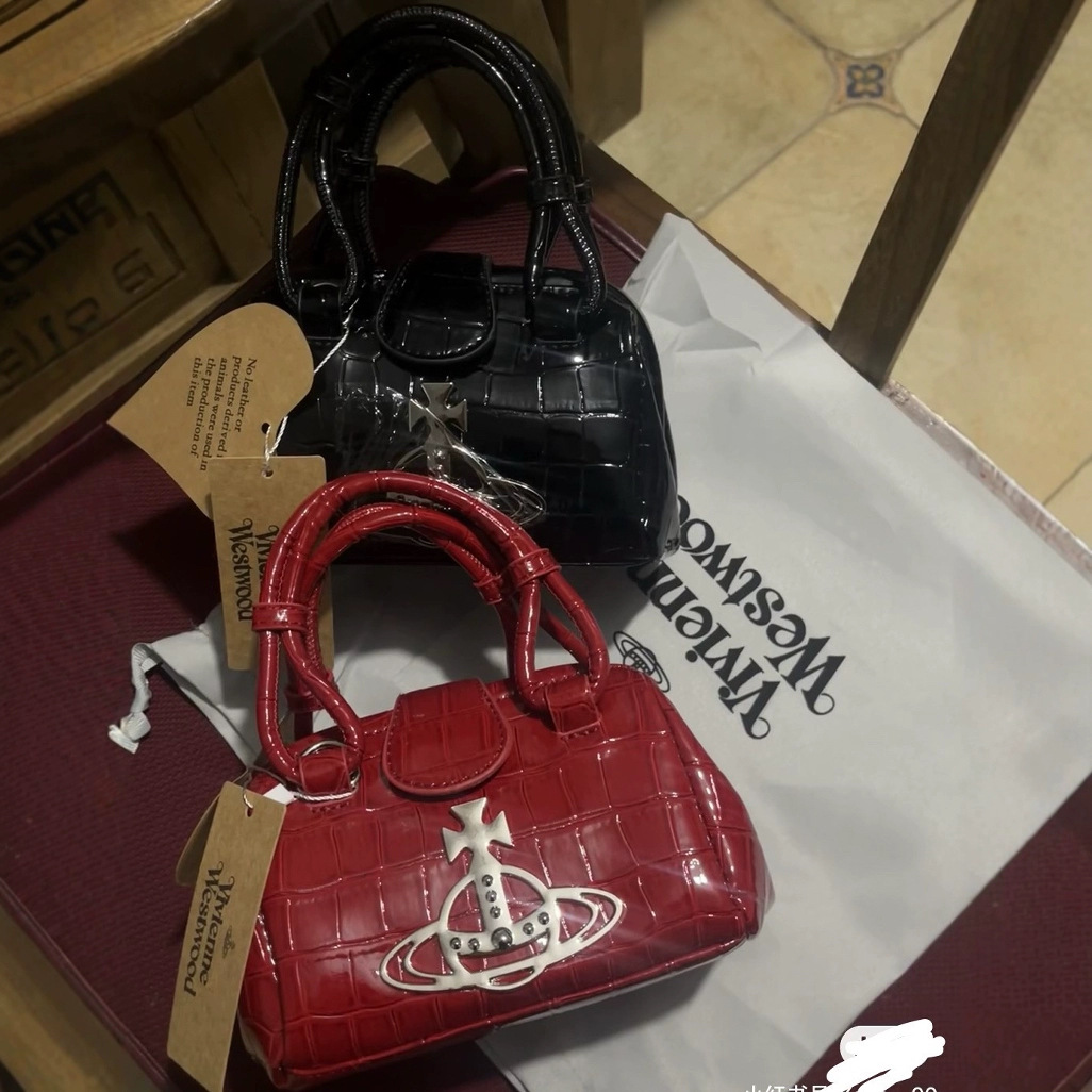 High Version Empress Dowager Saturn Hand Chain Mini Crossbody Bag Crocodile Pattern Patent Leather Clip Bag Vintage Small Waste Bag